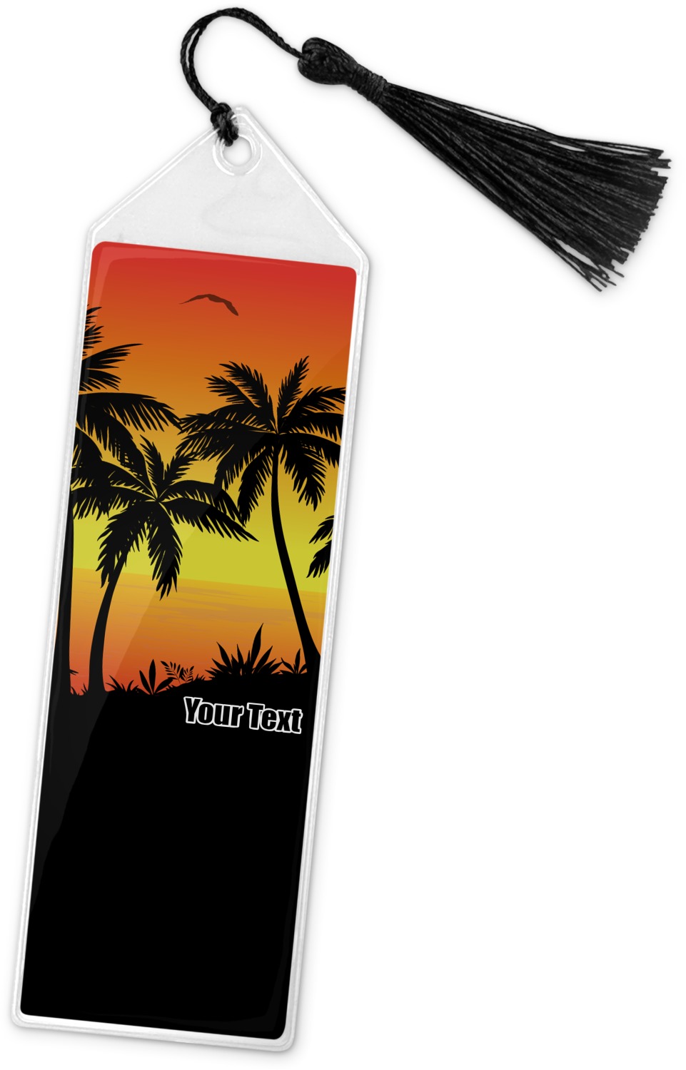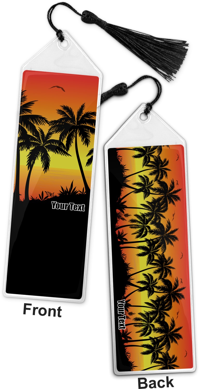 Your personalized bookmark is made of a sturdy, clear vinyl, and is approximately 7.5" x 2.25". We display your personalization on vinyl inserts that are placed on both sides. Accompanying each book marker is a black, fringe tassel that attaches to the reinforced, triangular header.