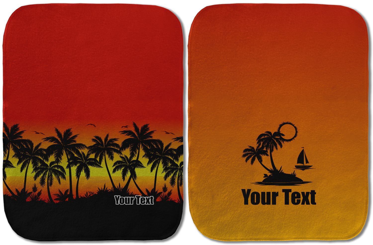 Jump into our design center to get going. Pick other backgrounds or fonts. Even pick out a monogram or graphic to go with your tropical sunset. If you ever need any help in our design center feel free to give us a call or hop on our online chat. We are always happy to help.