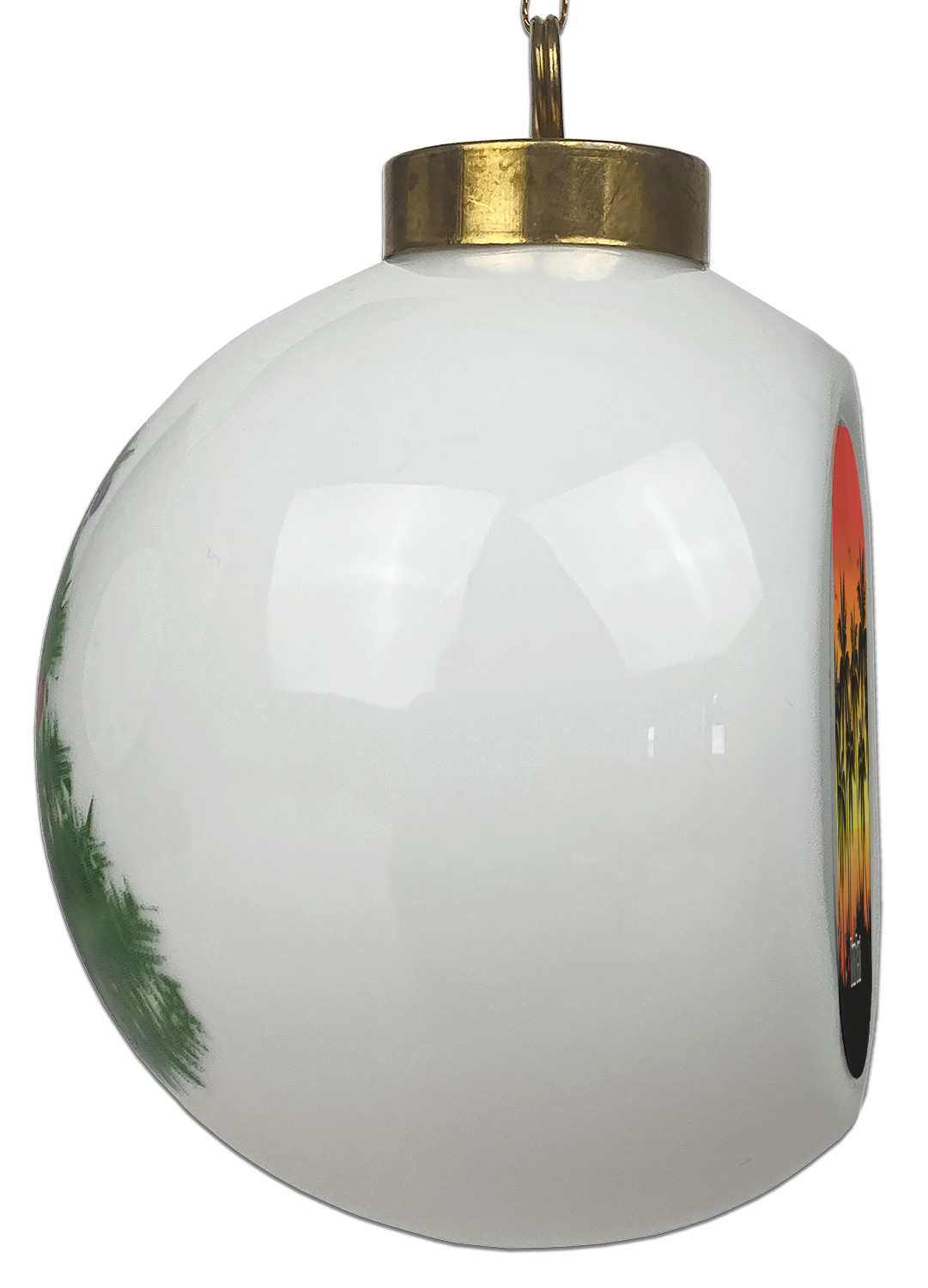 Our Christmas ornaments are a unique ceramic ball shape with a twist as it has a flat face to display your custom design! Select from one of our two design types - Christmas Tree or Poinsettia Garland - to adorn the curved back of your personal design. Each ornament measures 3H x 2.5W x 2D accompanied with a gold string accent for finishing touches to hang on your beautiful Christmas tree!
