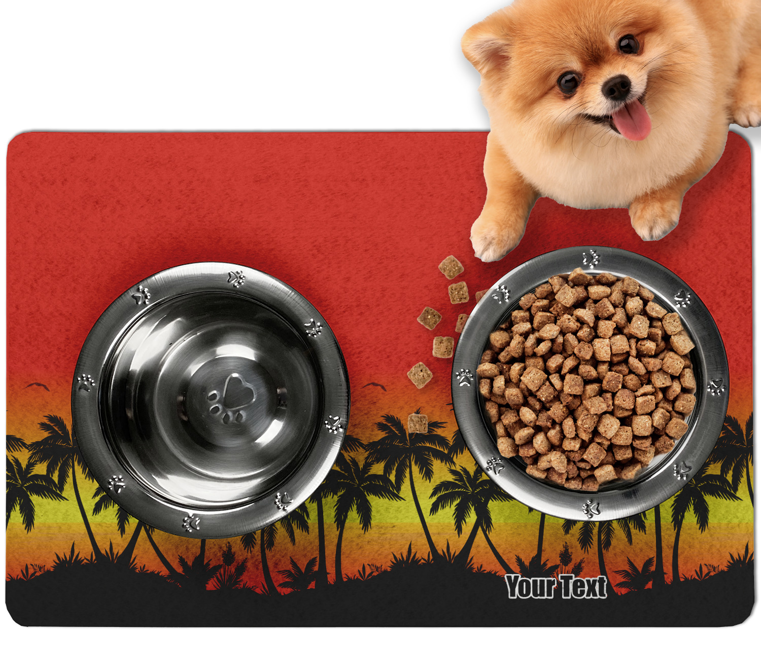 This dog bowl mat, fabricated from polyester, proudly displays your customized design on its top, while its bottom includes a non-slip rubber. This feature allows it to remain firmly in place, even when your dog spills his/her water. With 3 sizes available (18" x 12", 24" x 18", 30" x 24"), the pet food mat has ample space for both a food and water bowl for any sized dogs. Though specified for dogs' use, these mats are also a splendid option for cats.