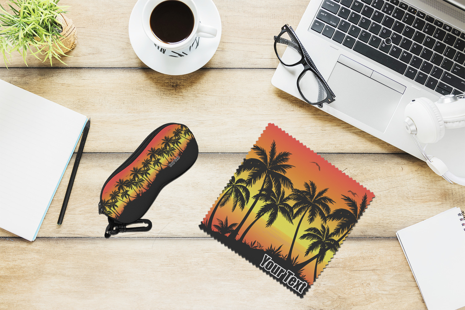 Jump into our design center to get going. Pick other backgrounds or fonts. Even pick out a monogram or graphic to go with your tropical sunset. If you ever need any help in our design center feel free to give us a call or hop on our online chat. We are always happy to help.