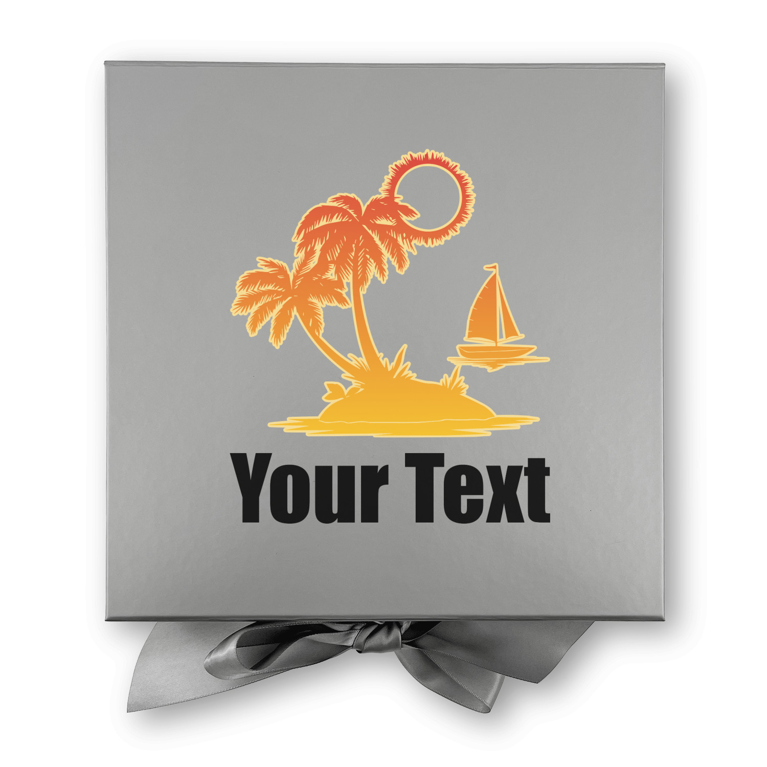 Jump into our design center to get going. Pick other backgrounds or fonts. Even pick out a monogram or graphic to go with your tropical sunset. If you ever need any help in our design center feel free to give us a call or hop on our online chat. We are always happy to help.