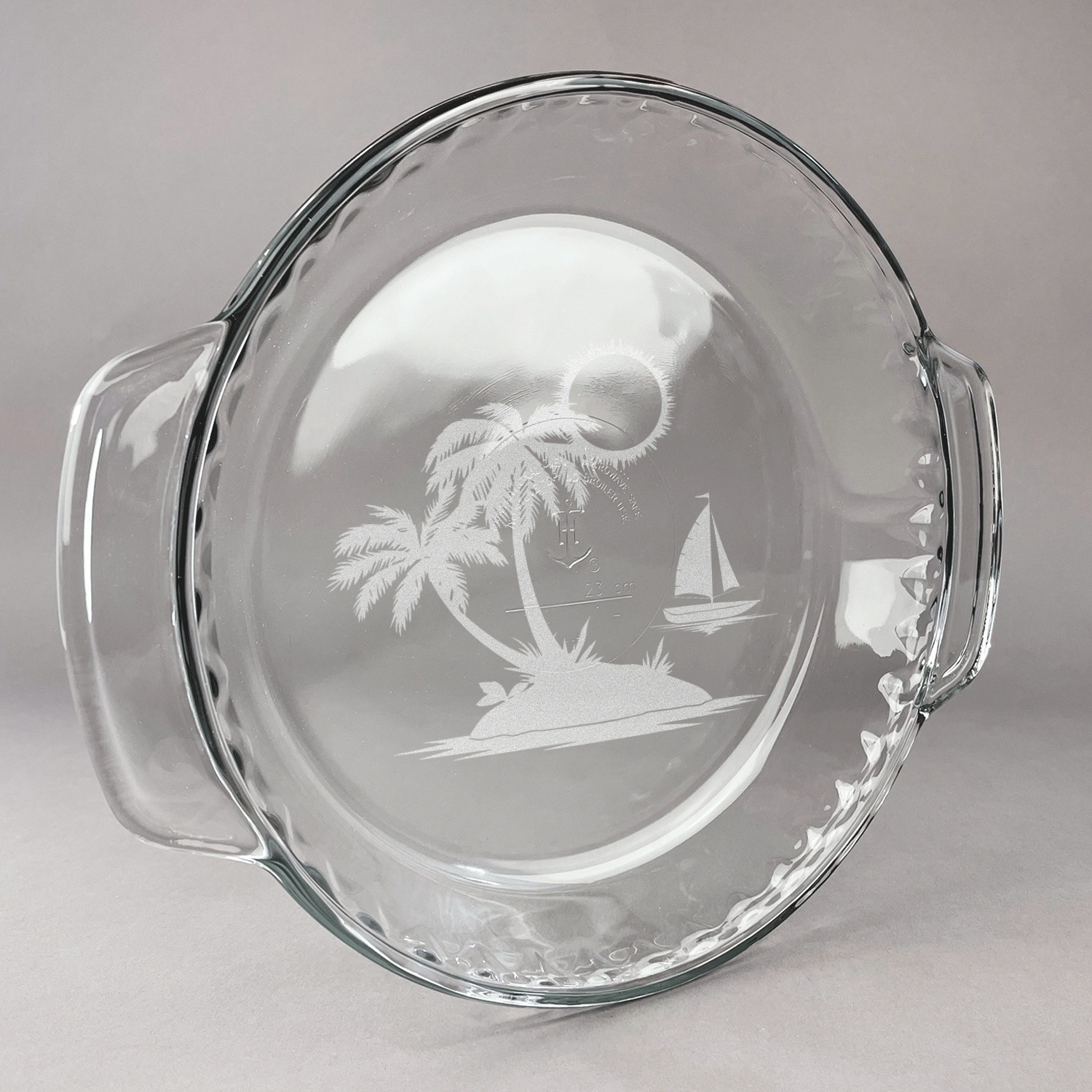 Made from an Anchor Hocking 9.5" glass pie plate, then personalized with the design of your choice, you're sure to love these 100% made in the USA pie plates. The scalloped edge gives these the classic pie plate look and the tapered edges allow the pie to be served easily.