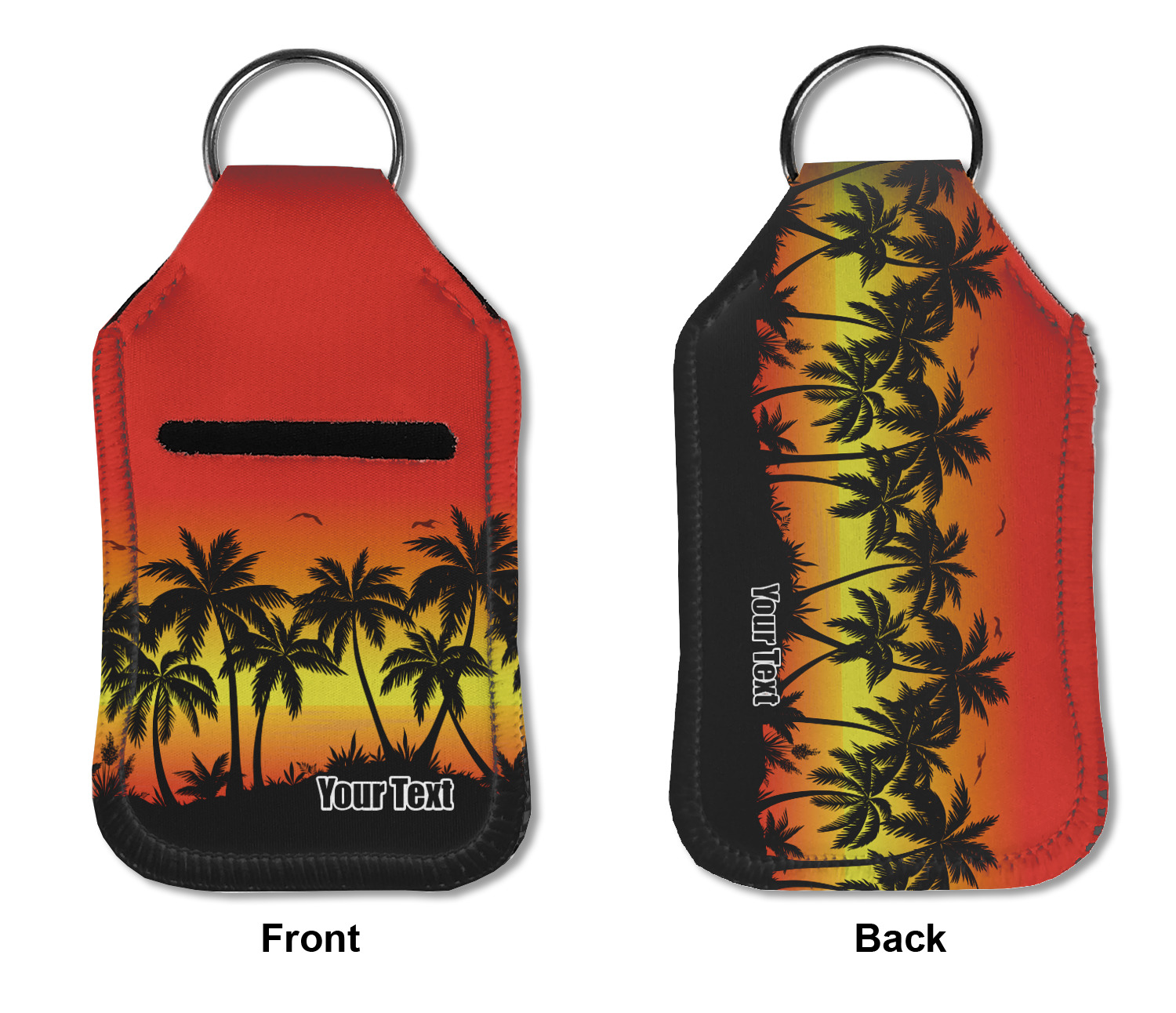 Each hand sanitizer holder comes with its own empty travel-sized, refillable hand sanitizer sure to fit snug in your customized sanitizer case! Our hand sanitizer cases are a durable, yet soft neoprene material sure to last any daily activities or travel agenda. Customize and personalize a hand sanitizer bottle holder with one of our two sizes - small (4.25" x 2.25") or large (5.5" x 2.5"). Each travel sanitizer holder comes with a keyring for attachment on bags, keys, or more!
