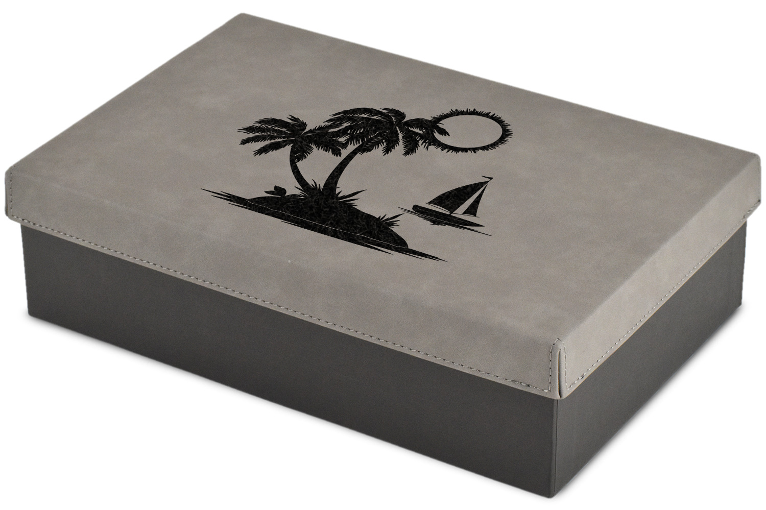 These gift boxes are available in 3 different sizes to accommodate various sized gifts. Available in gray as a neutral color for any occasion as well as to showcase your design boldly. Engraved with a laser this high quality paper board and faux leather gift box is unique and makes any gift stand out.