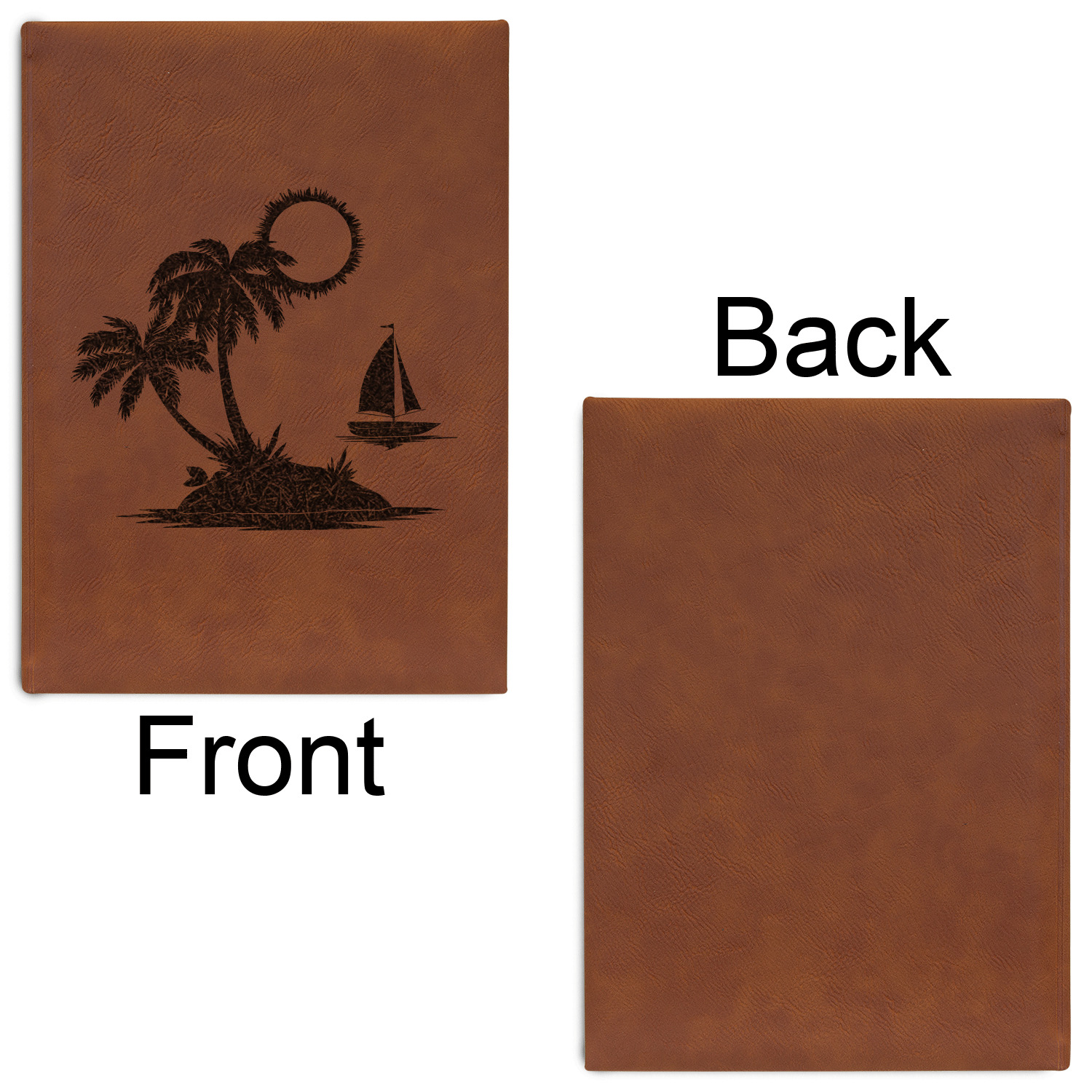 The faux leather covers are a rich cognac / rawhide color and can be customized with your design. From a simple name or monogram or a logo to a detailed mandala - the choice for customization & personalization is truly yours. Customize one of our designs or upload your own.