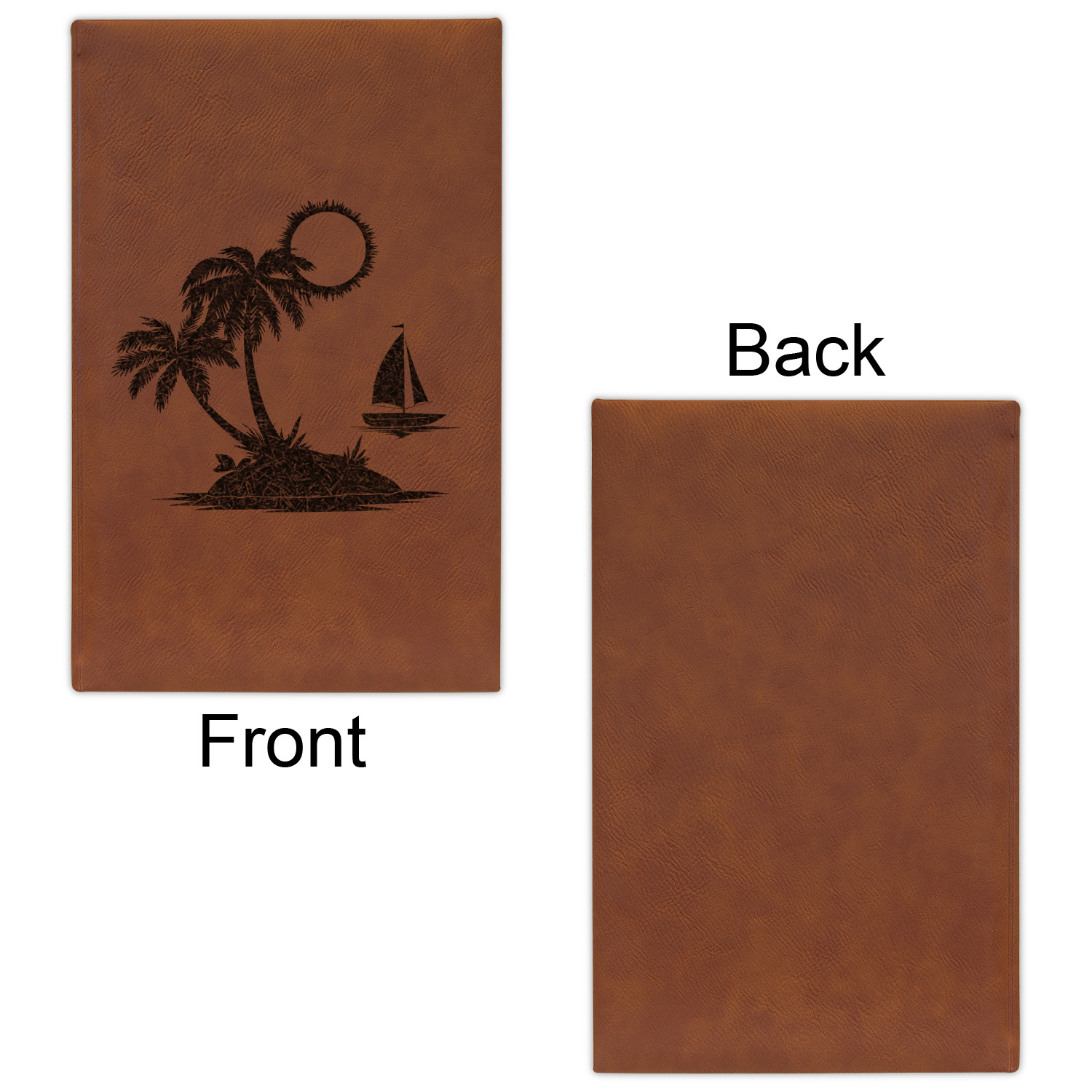 The faux leather covers are a rich cognac / rawhide color and can be customized with your design. From a simple name or monogram or a logo to a detailed mandala - the choice for customization & personalization is truly yours. Customize one of our designs or upload your own.