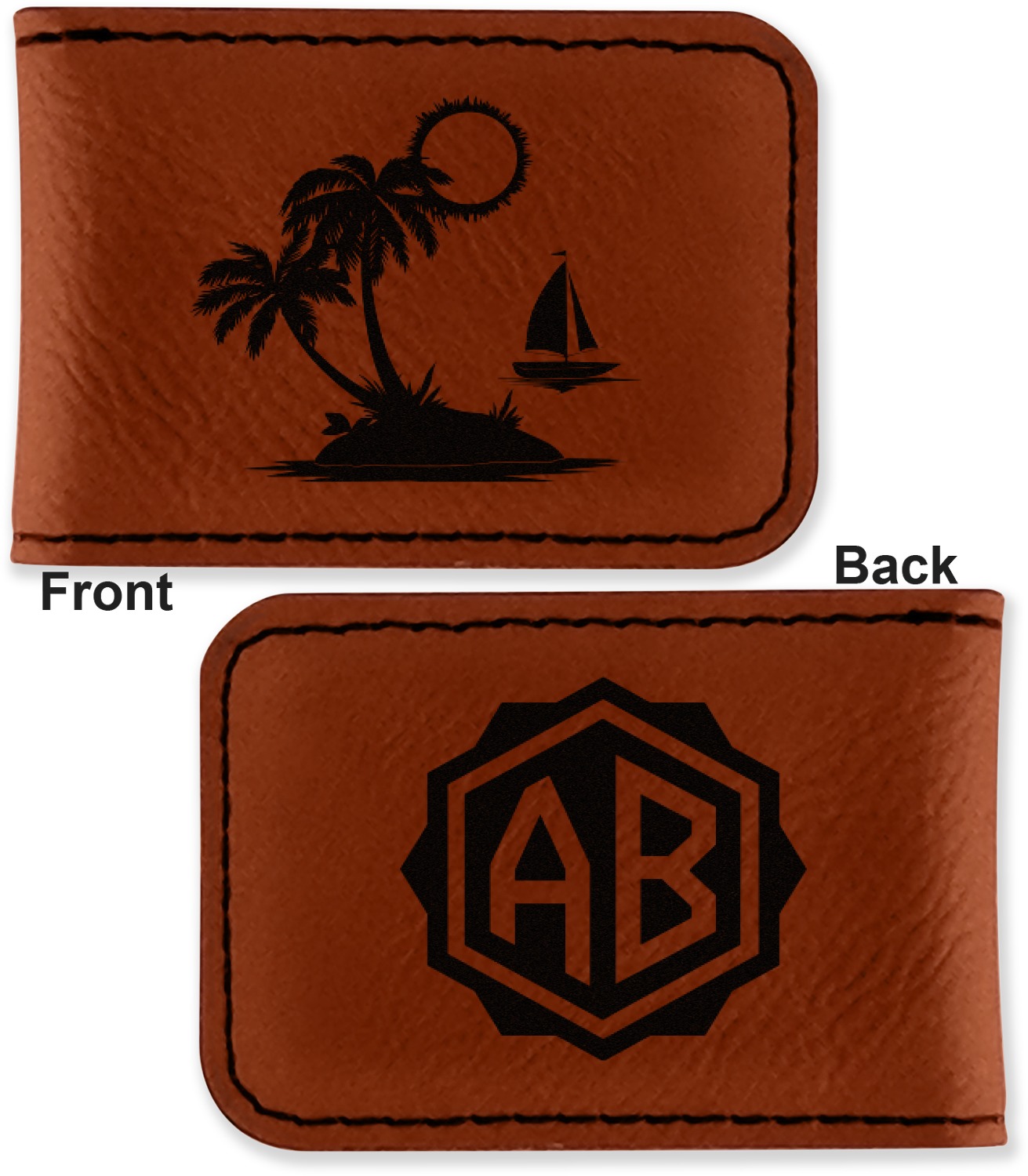 Your money clip will be laser engraved so that the design you choose will come out black. Find a fun graphic, monogram, or font to use to personalize your money clip either on just the front or the front and the back.