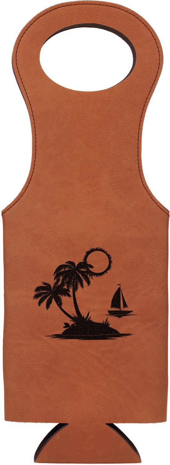 This wine carrier is made from a stunning leatherette, in a cognac-brown color. Strong, black stitching lines the sides of your wine bottle bag and provides extra durability. The interior is lined with a padded, black material to allow for a snug fit once your bottle is placed inside. At the top of this wine gift bag, you'll find two oval shaped handles that elegantly complements the rest of the bag's style. We provide you with the option of laser-engraving the front, or the front and back of your new personalized wine bag!