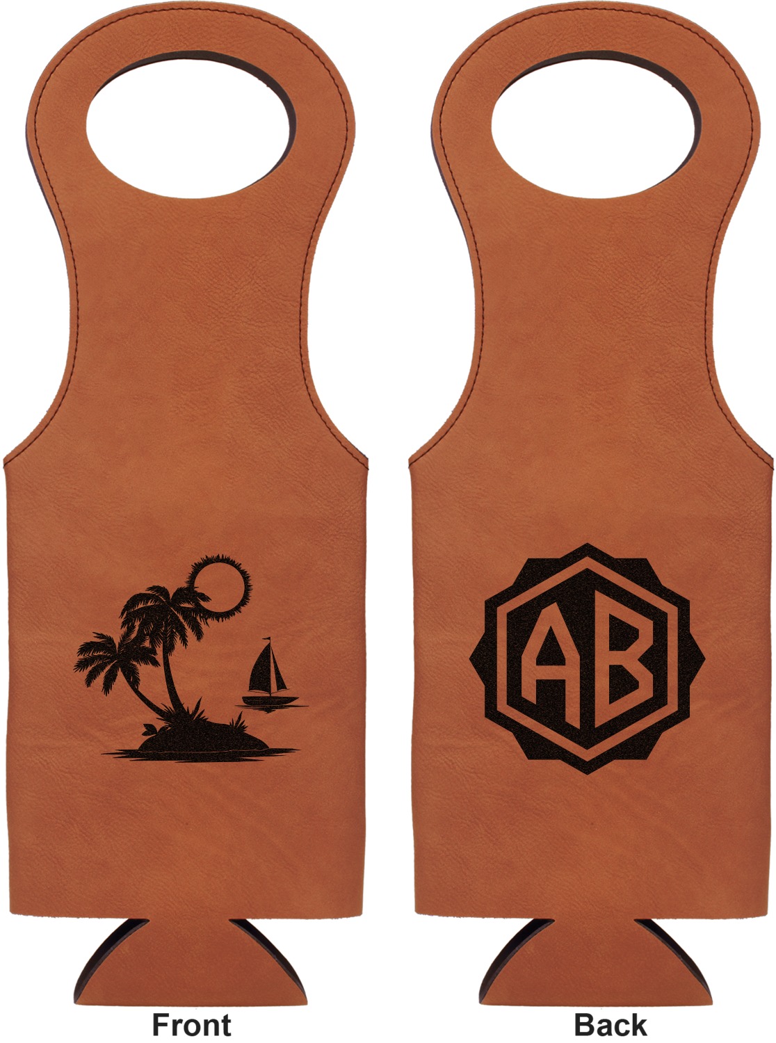 This wine carrier is made from a stunning leatherette, in a cognac-brown color. Strong, black stitching lines the sides of your wine bottle bag and provides extra durability. The interior is lined with a padded, black material to allow for a snug fit once your bottle is placed inside. At the top of this wine gift bag, you'll find two oval shaped handles that elegantly complements the rest of the bag's style. We provide you with the option of laser-engraving the front, or the front and back of your new personalized wine bag!