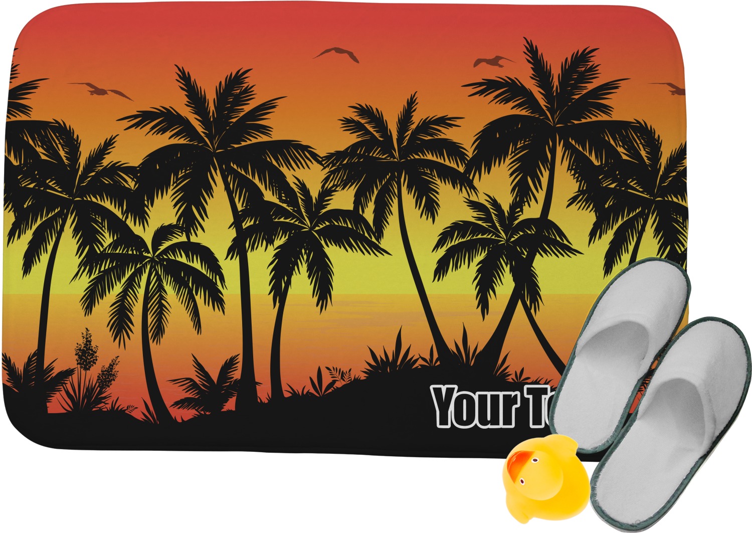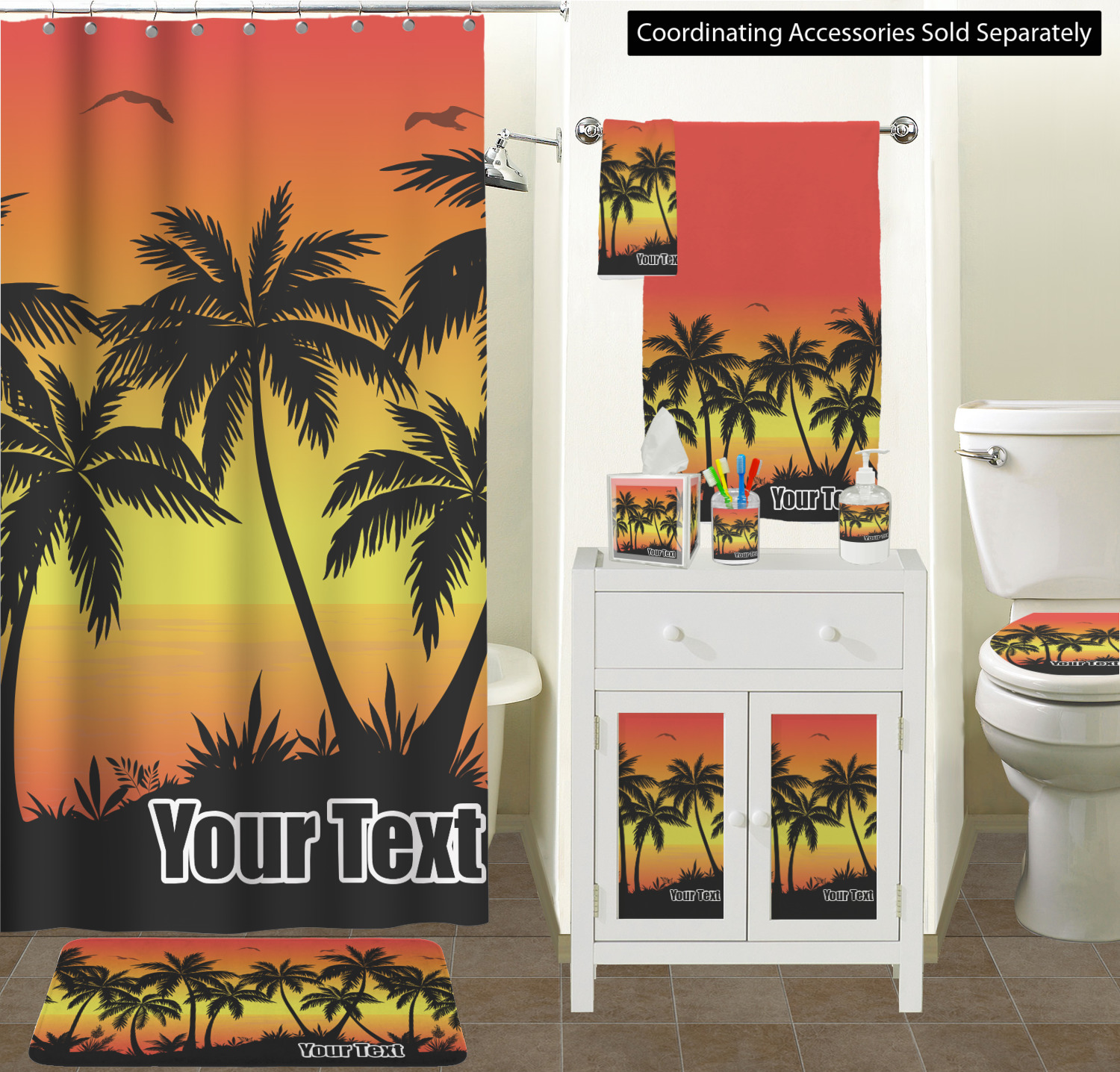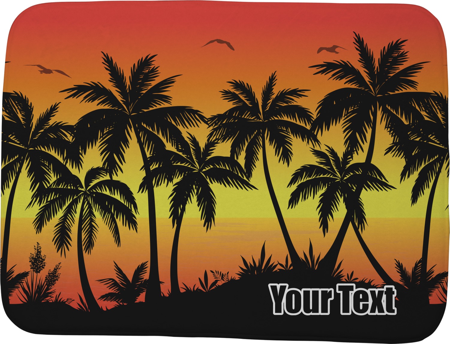 Jump into our design center to get going. Pick other backgrounds or fonts. Even pick out a monogram or graphic to go with your tropical sunset. If you ever need any help in our design center feel free to give us a call or hop on our online chat. We are always happy to help.