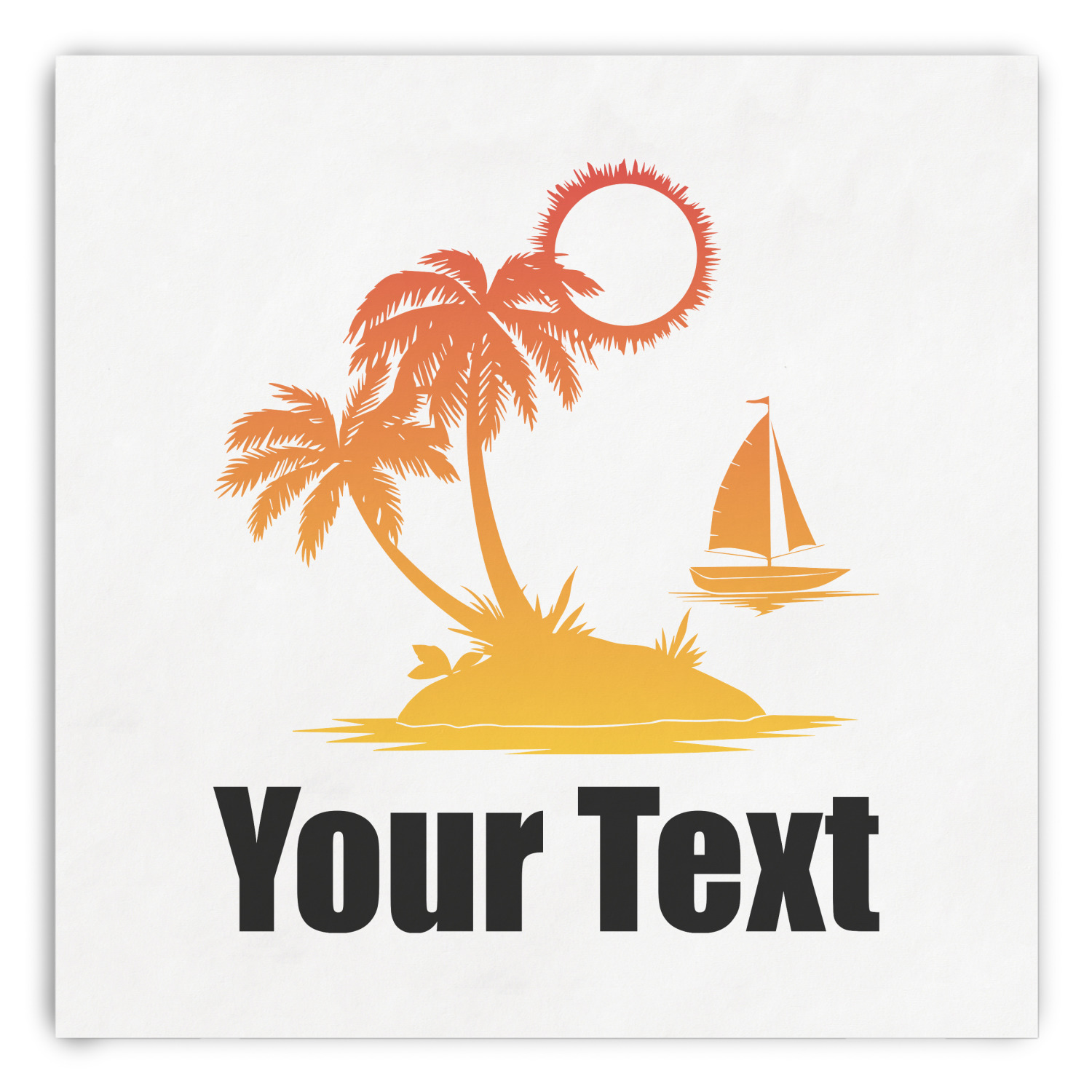 Jump into our design center to get going. Pick other backgrounds or fonts. Even pick out a monogram or graphic to go with your tropical sunset. If you ever need any help in our design center feel free to give us a call or hop on our online chat. We are always happy to help.