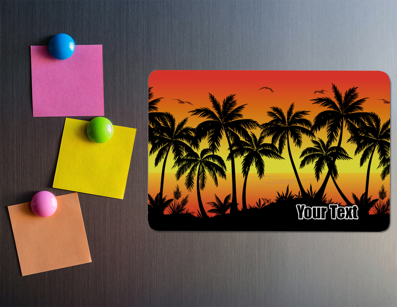 Jump into our design center to get going. Pick other backgrounds or fonts. Even pick out a monogram or graphic to go with your tropical sunset. If you ever need any help in our design center feel free to give us a call or hop on our online chat. We are always happy to help.