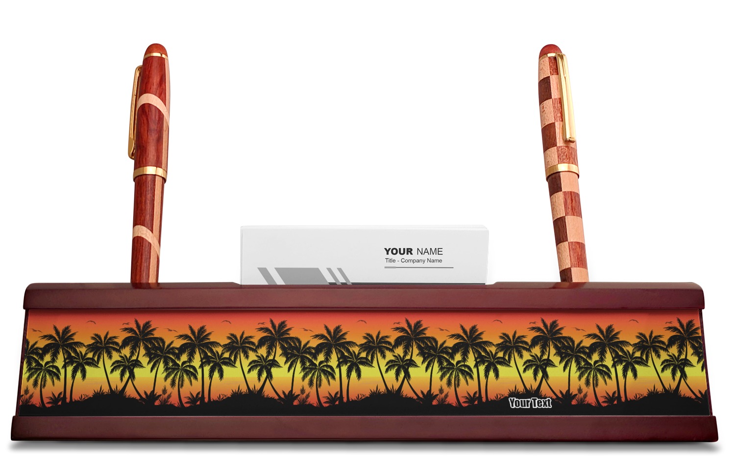 Your desk name plates are crafted from a high-quality, dark-cherry mahogany. At approximately 9.5 by 1.875 by 2.5 inches, this name plaque will fit perfectly, front and center, on your desk. Your customization spans across the entire face of the nameplate. Behind the nameplate lies a skinny slot that can fit approximately 15, traditionally-sized, business cards. You can also store your writing utensils on either side of this custom desk name plate.