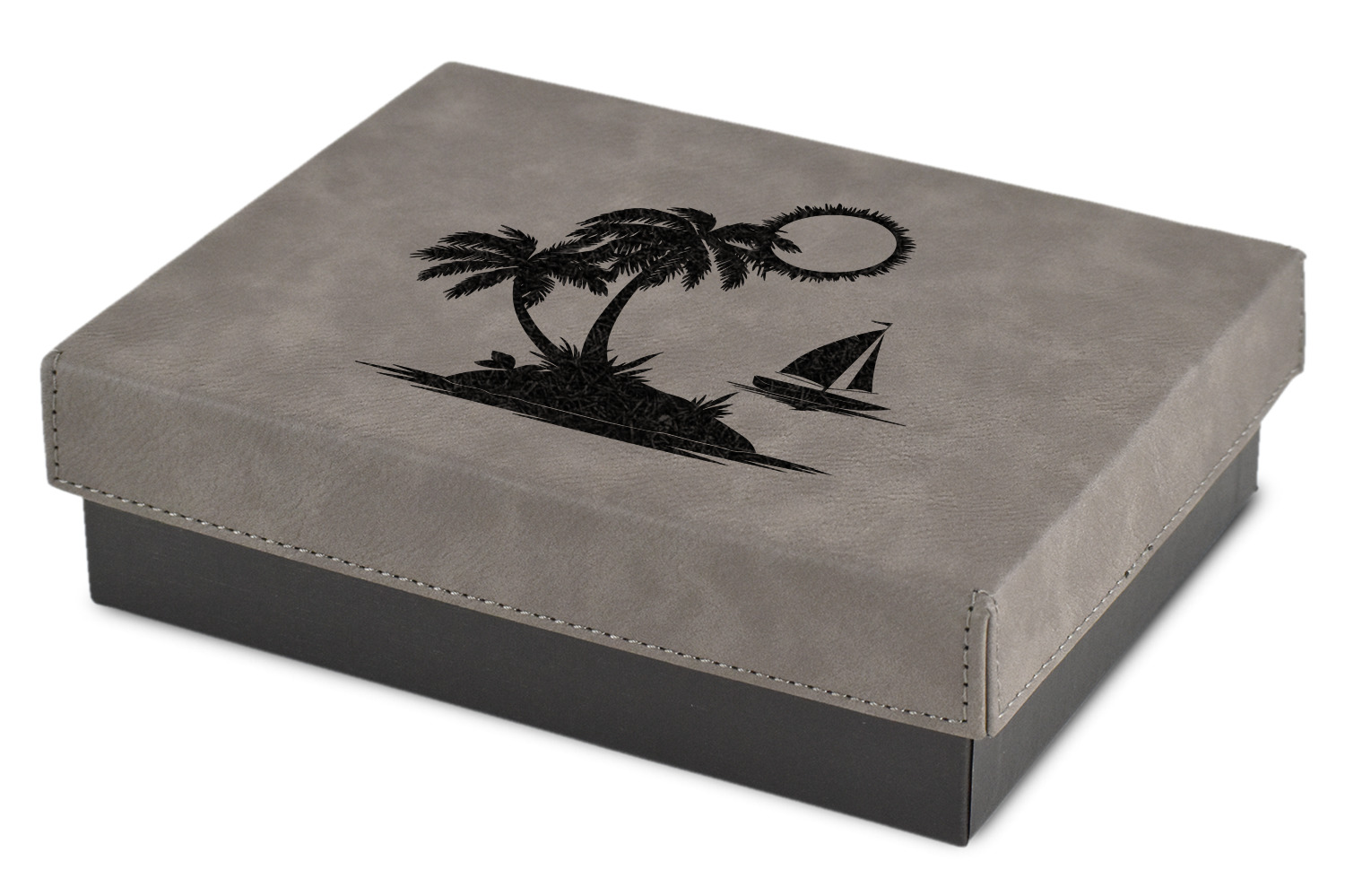 These gift boxes are available in 3 different sizes to accommodate various sized gifts. Available in gray as a neutral color for any occasion as well as to showcase your design boldly. Engraved with a laser this high quality paper board and faux leather gift box is unique and makes any gift stand out.