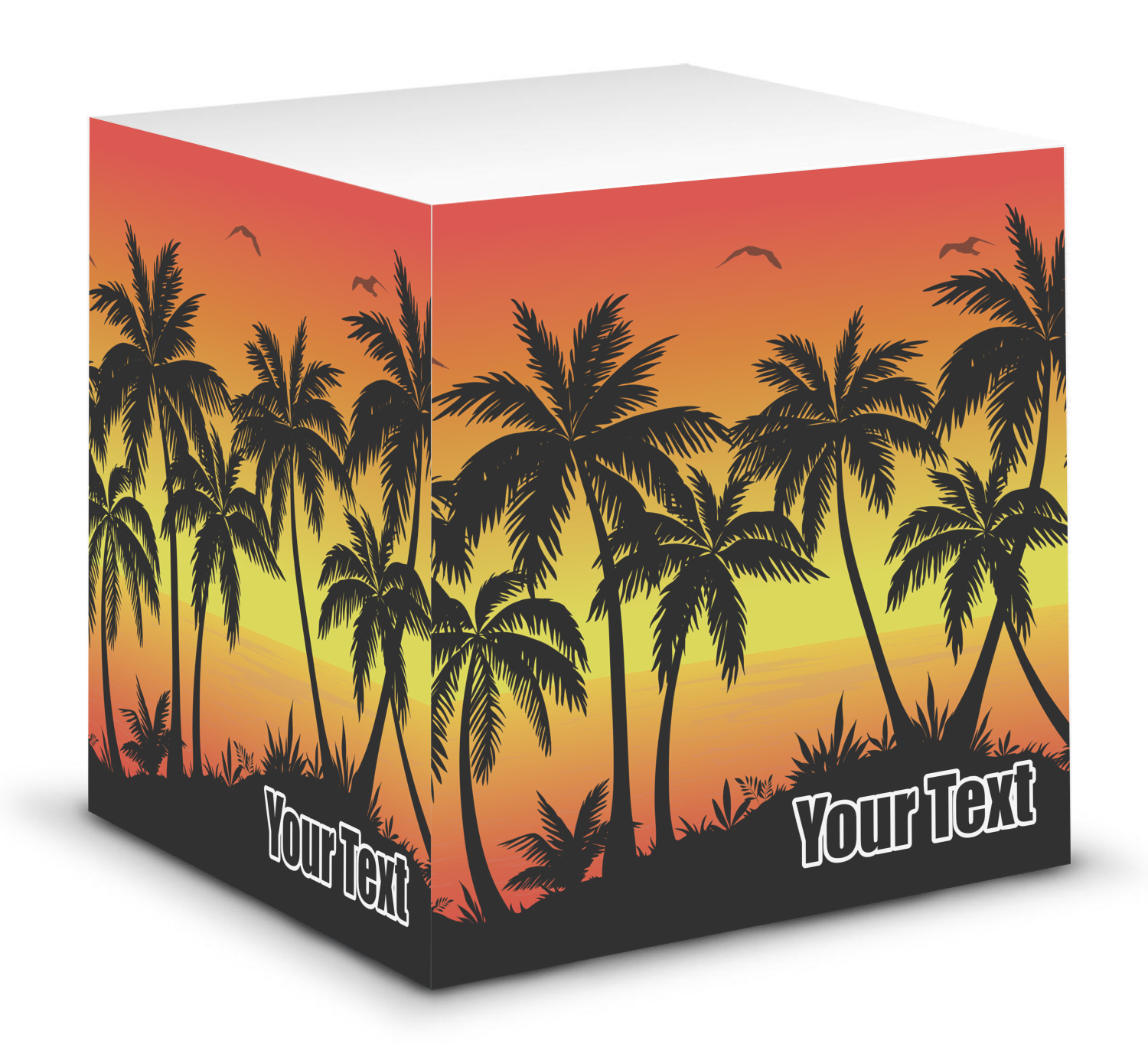 This note cube features 700 sheets of matte, white paper. Each sheet measures at 3.5 by 3.5 inches and has an adhesive strip at its top. Your personalized design is displayed on all four edges of the sticky pad.