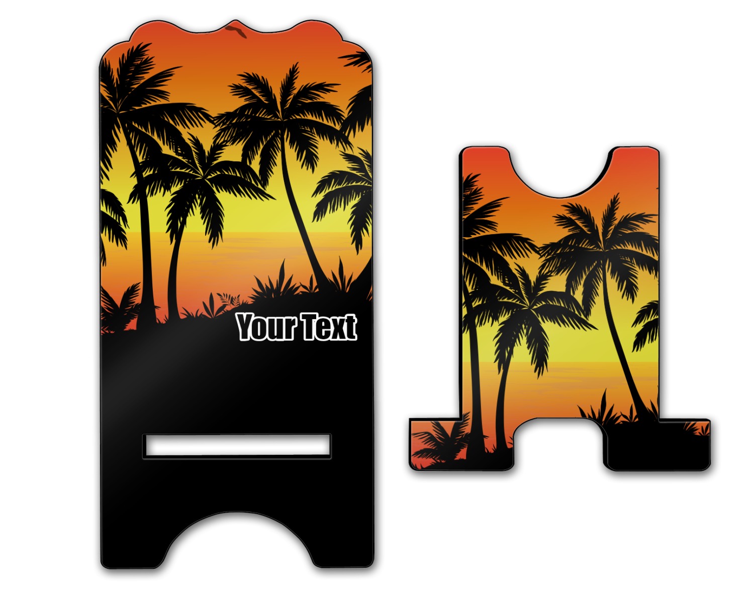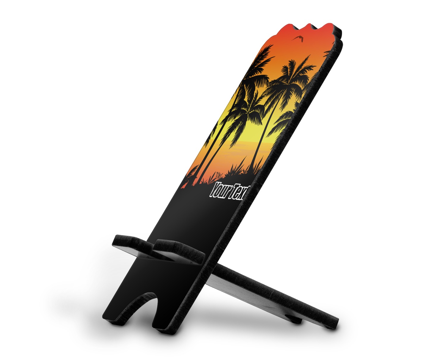 Jump into our design center to get going. Pick other backgrounds or fonts. Even pick out a monogram or graphic to go with your tropical sunset. If you ever need any help in our design center feel free to give us a call or hop on our online chat. We are always happy to help.