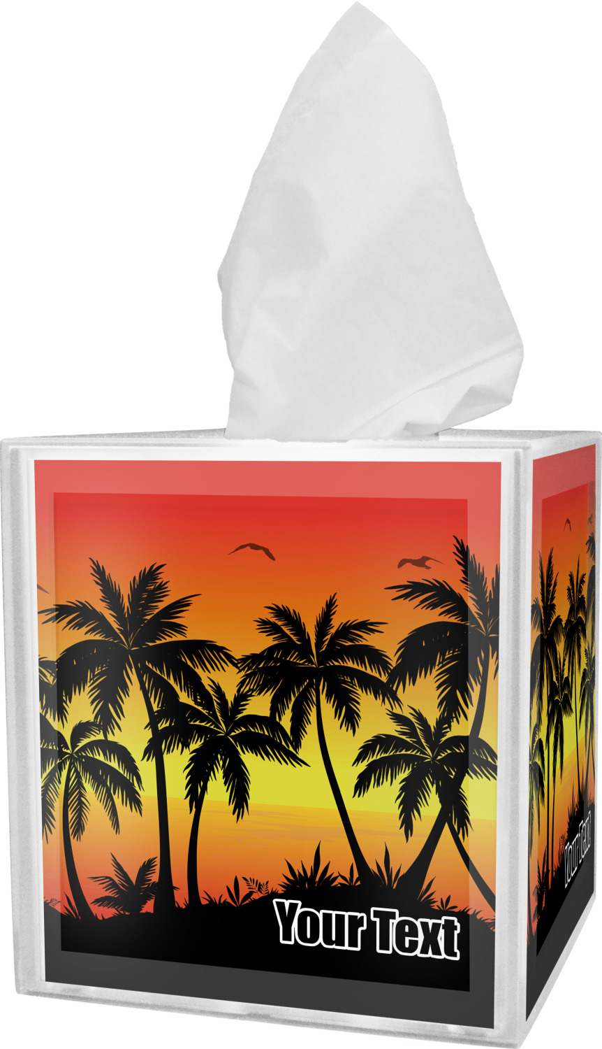 These tissue holders are built from durable acrylic and display your unique personalization on fine-quality vinyl inserts placed within the four sides and top. The box features two pieces, allowing you to easily switch out tissue boxes. On the sides, youll find ridges that ensure the top and base fit securely in place. The bottom of these tissue box holders has four, rubber, non-slip pads to prevent the box from scuffing any surface you decide to display it on. Each box can fit a standard 5 by 5-inch box of tissues.