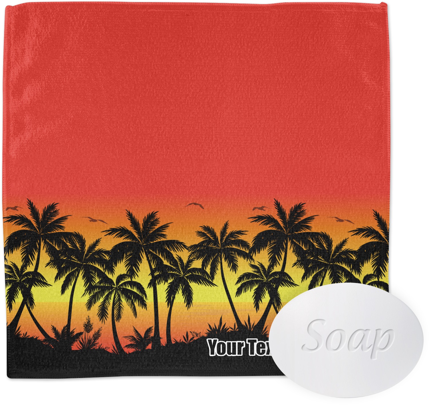 Jump into our design center to get going. Pick other backgrounds or fonts. Even pick out a monogram or graphic to go with your tropical sunset. If you ever need any help in our design center feel free to give us a call or hop on our online chat. We are always happy to help.