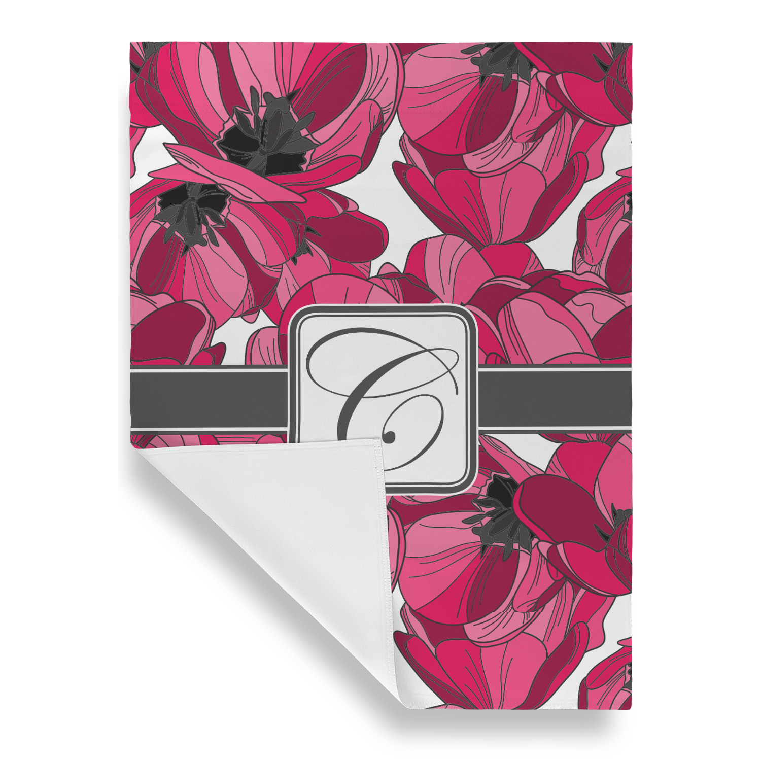 The tulips design has a classic ribbon in dark grey along with square label for your personalization.