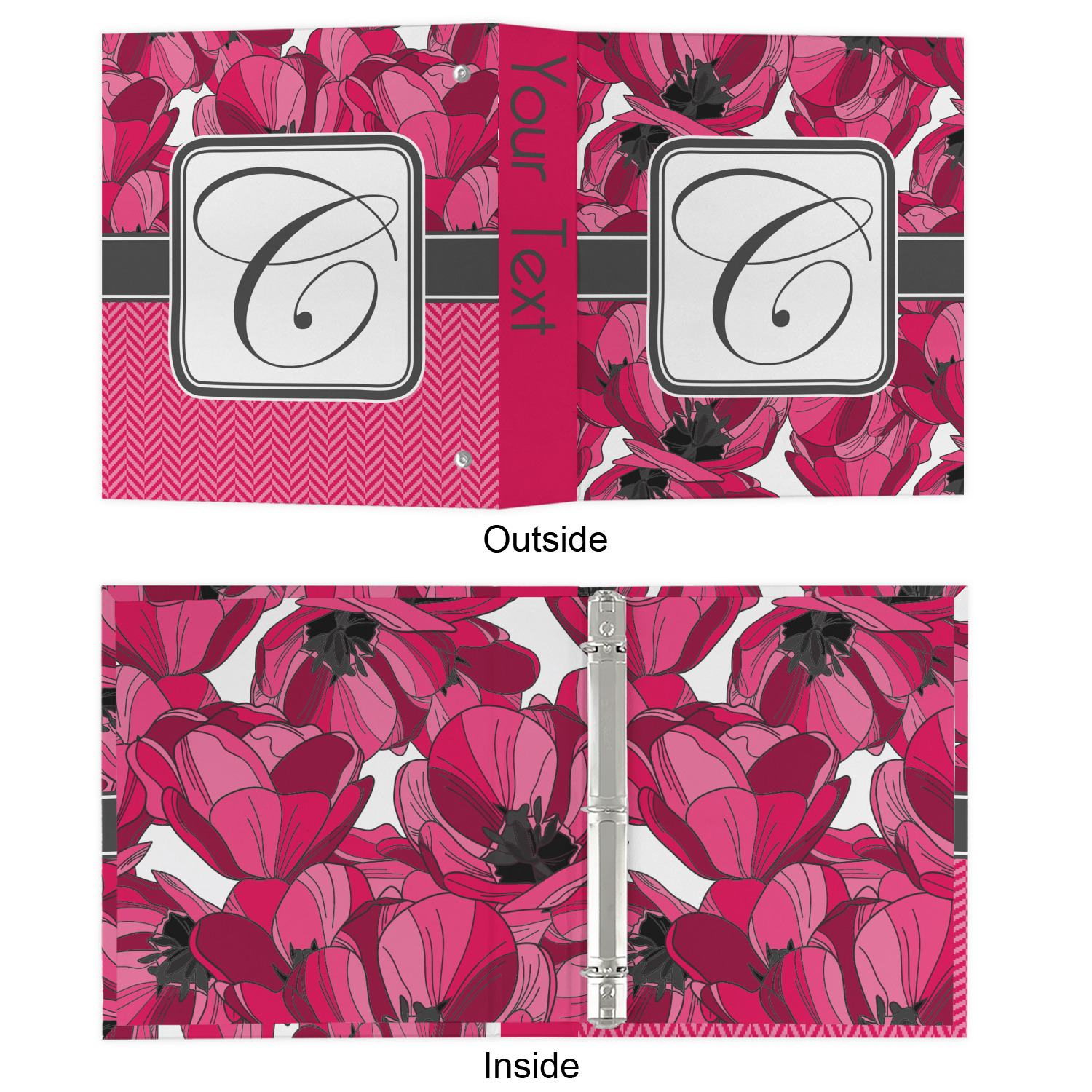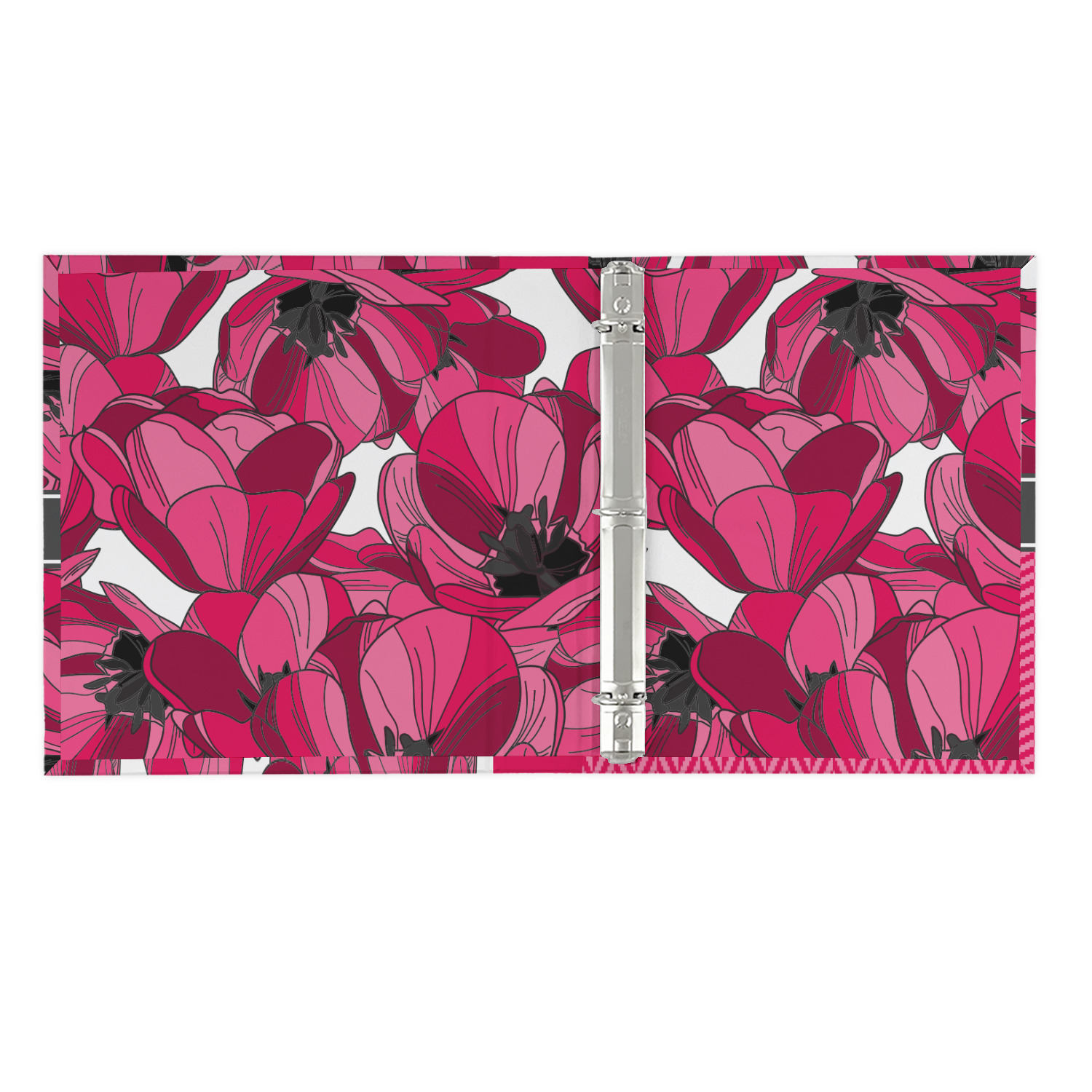 The outside is printed in 3 sections - front cover, spine and back cover - while the inside is printed in a full single print of your choice. The inside boasts a high quality nickel plated binder mechanism with a trigger opening function and is secured to the cardboard binder with posts and screws.