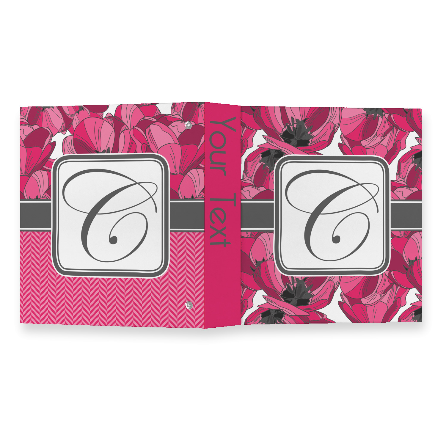 Made from a sturdy cardboard base with a full high quality canvas textured vinyl wrap with the design of your choice. Unlike our standard 3-ring binder with the full wrap design your artwork wraps from the front and back and into the inside of the binder.