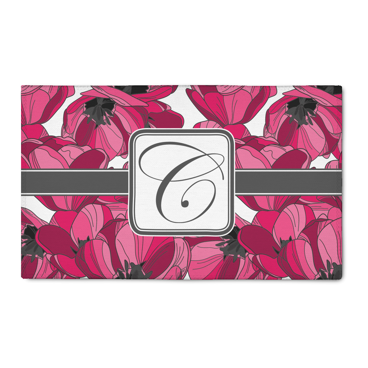 The tulips design has a classic ribbon in dark grey along with square label for your personalization.