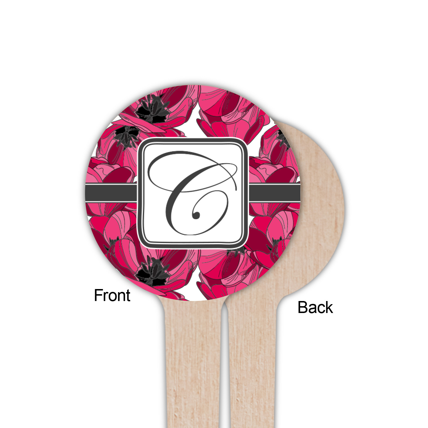 The tulips design has a classic ribbon in dark grey along with square label for your personalization.