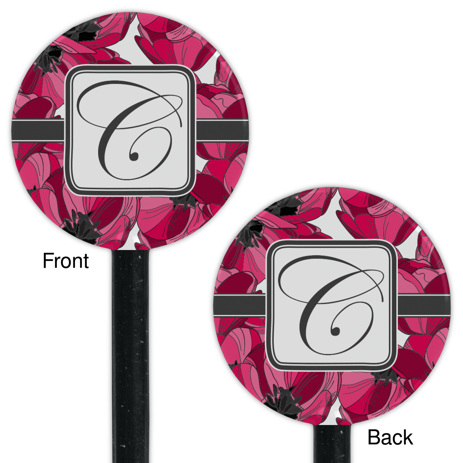 The tulips design has a classic ribbon in dark grey along with square label for your personalization.