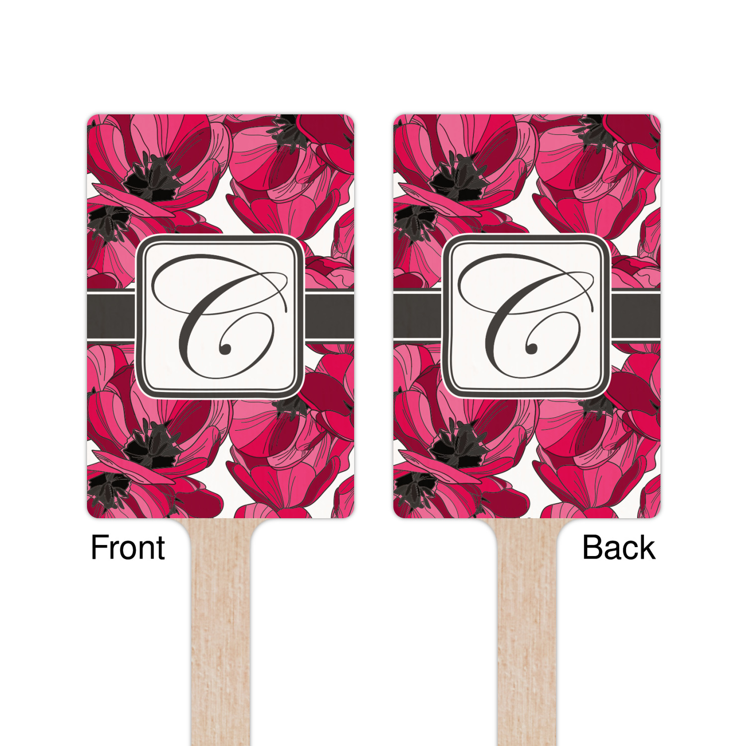 The tulips design has a classic ribbon in dark grey along with square label for your personalization.