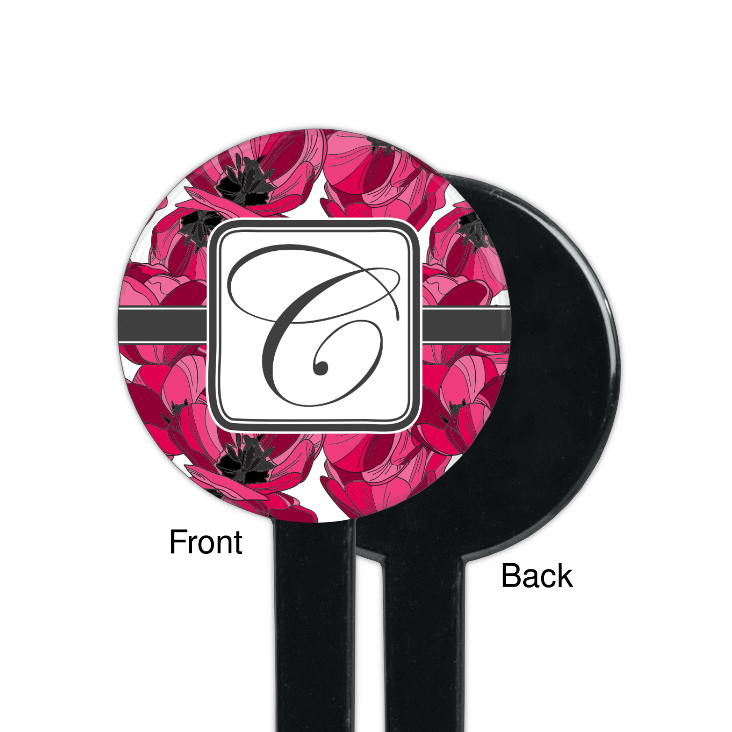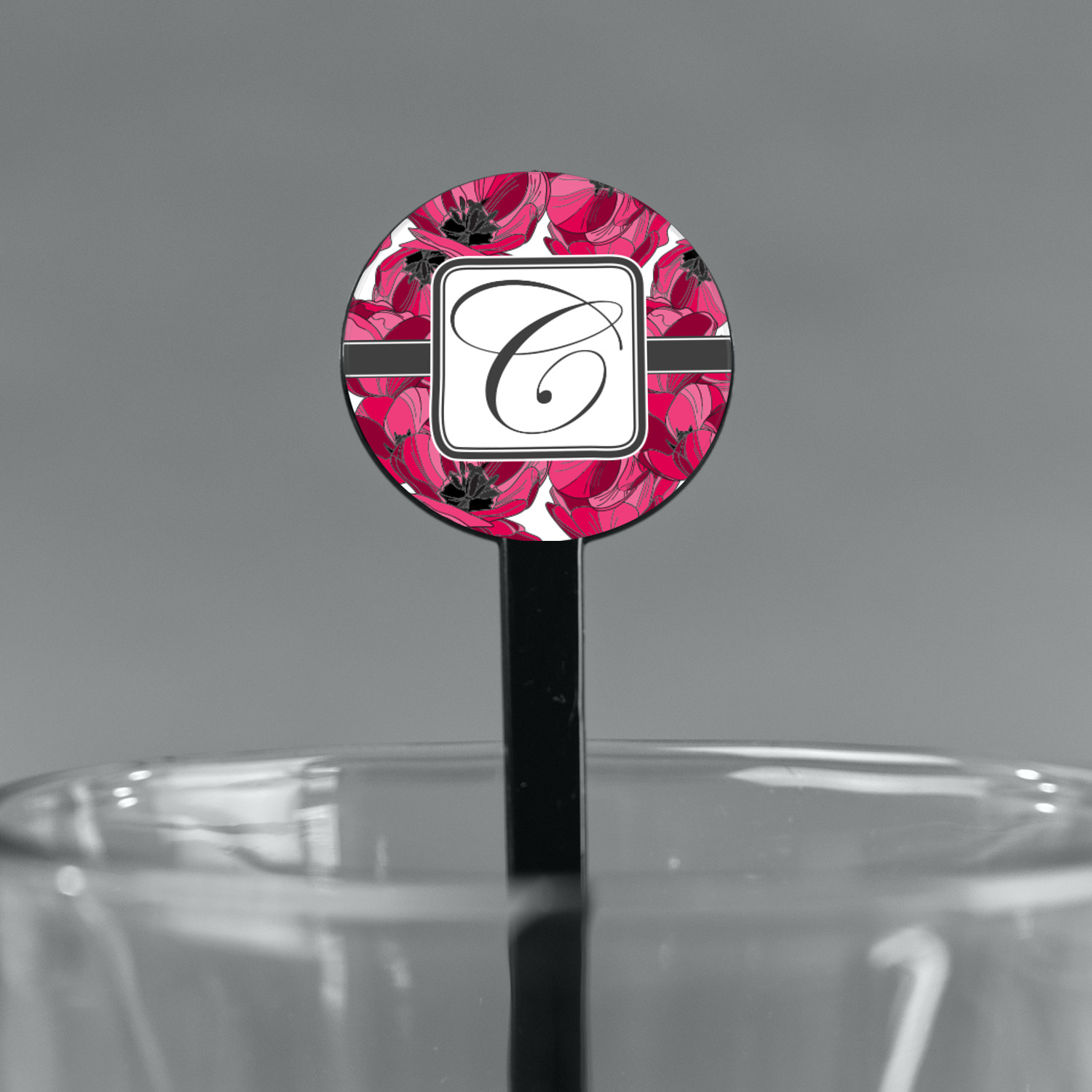 The tulips design has a classic ribbon in dark grey along with square label for your personalization.