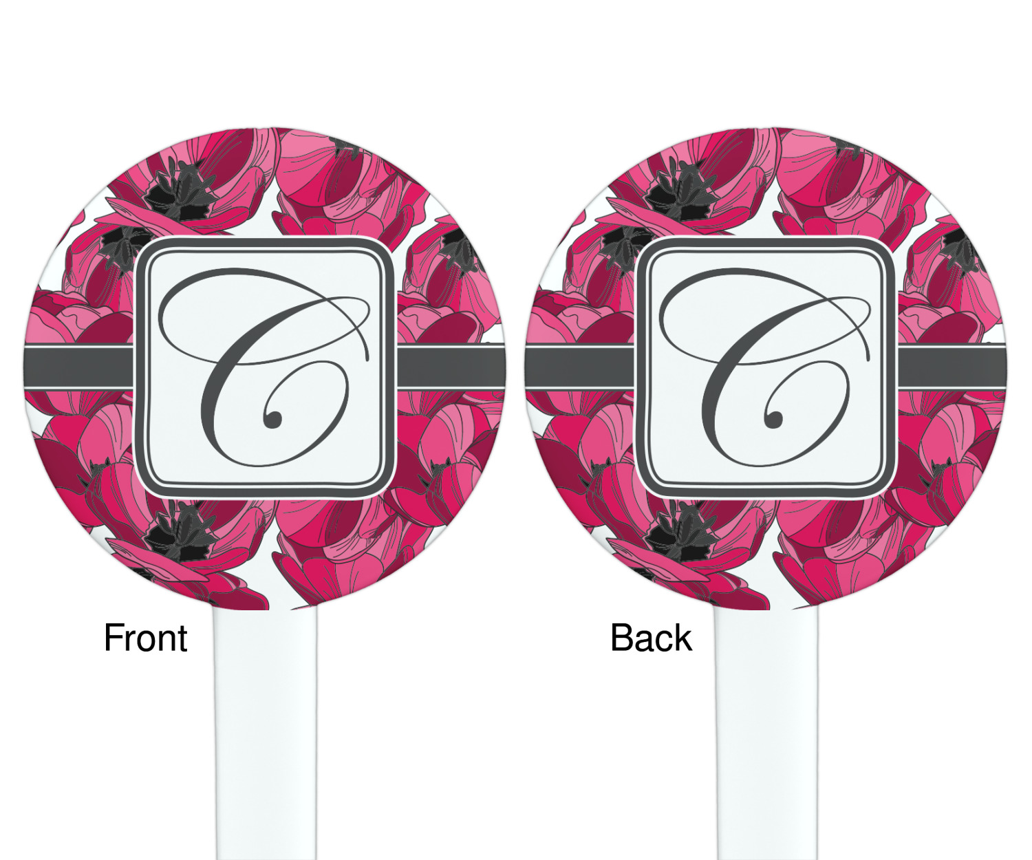 The tulips design has a classic ribbon in dark grey along with square label for your personalization.