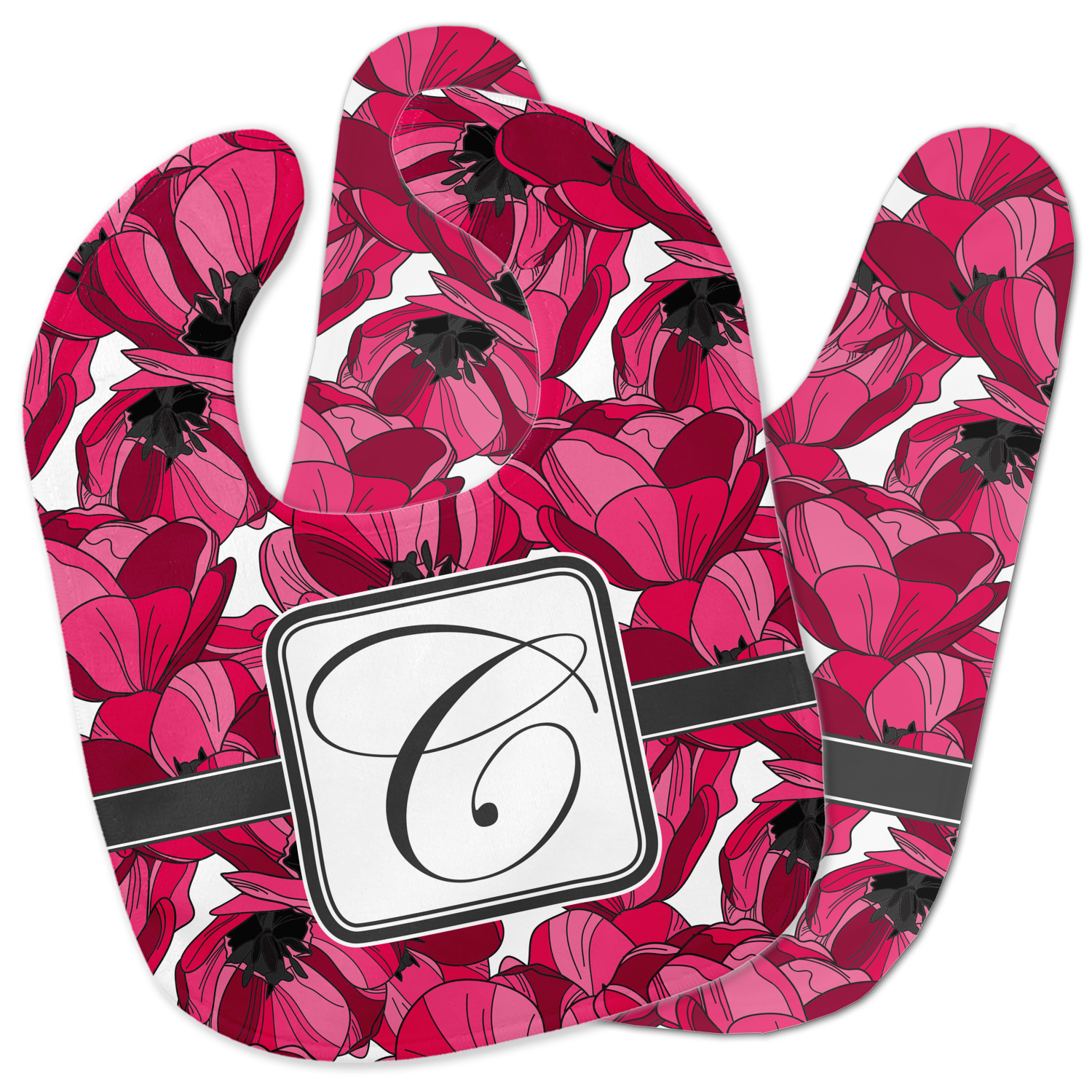 Made of soft polyester, each customizable bib hugs comfortably around the neck to catch every drip and drool. Each bib design is printed with baby-safe ink and finished with a secure stitch pattern and velcro clasp. We carry two customizable bib styles -Microfiber Velour and Jersey Knit.