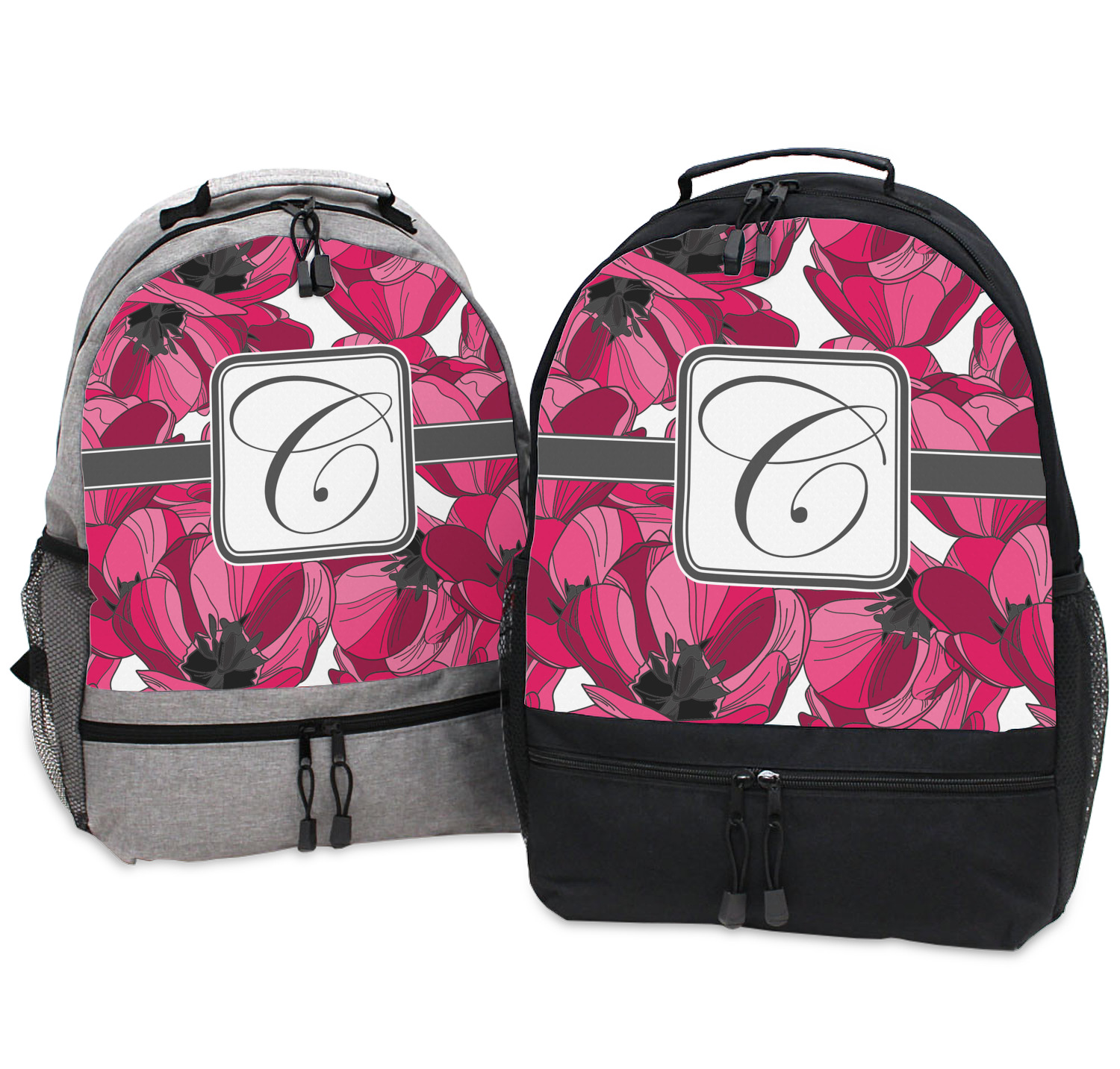 The tulips design has a classic ribbon in dark grey along with square label for your personalization.