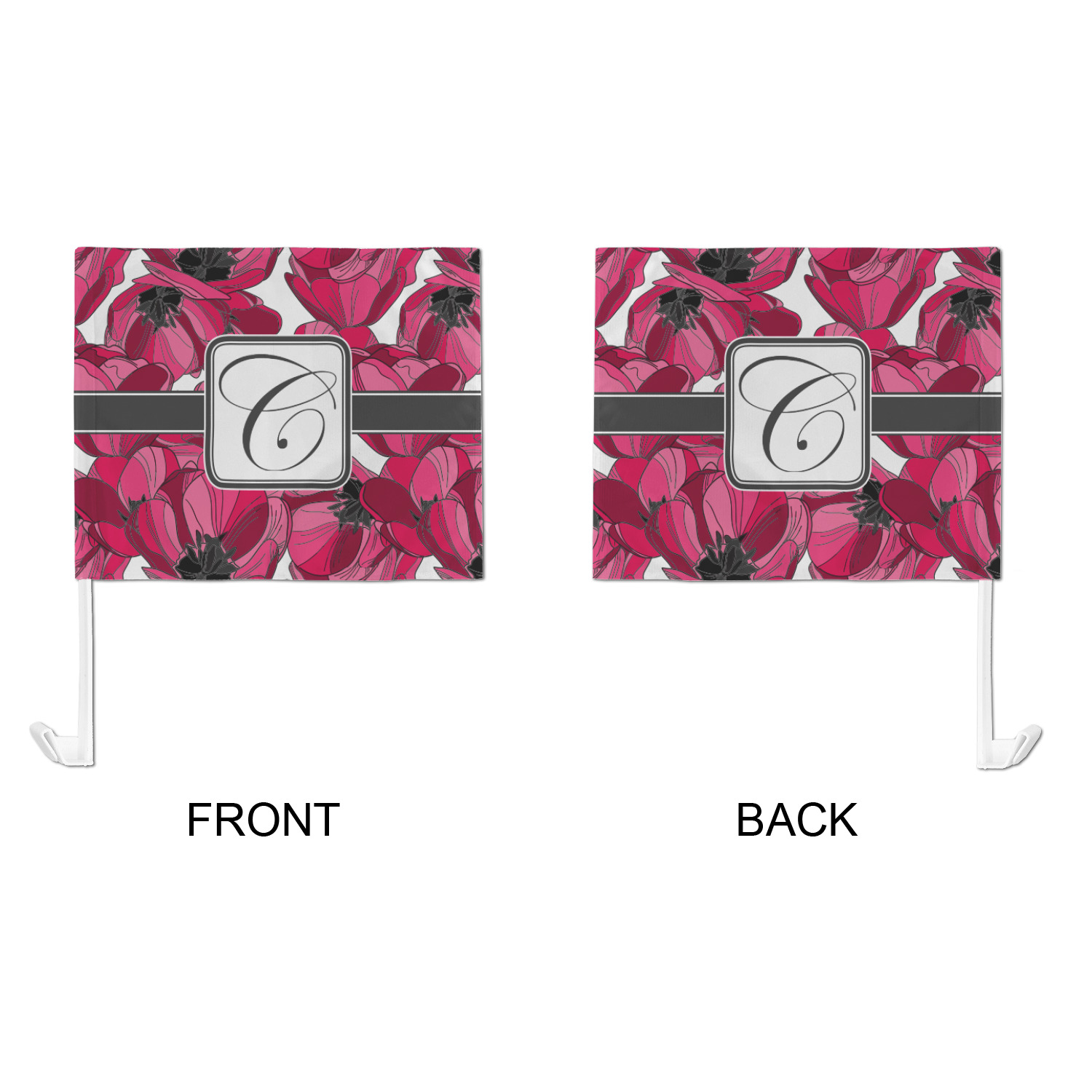 Our personalized flags are made from a durable, yet lightweight cloth that will proudly bear your logo or design of choice, while withstanding the outside elements. We have two size options - 8" x 11" and 11" x 15". Both come with a flag pole which includes a clip that secures the pole to the side window, whether it is rolled up or down. The flags are printed on both sides to display your design from all directions.