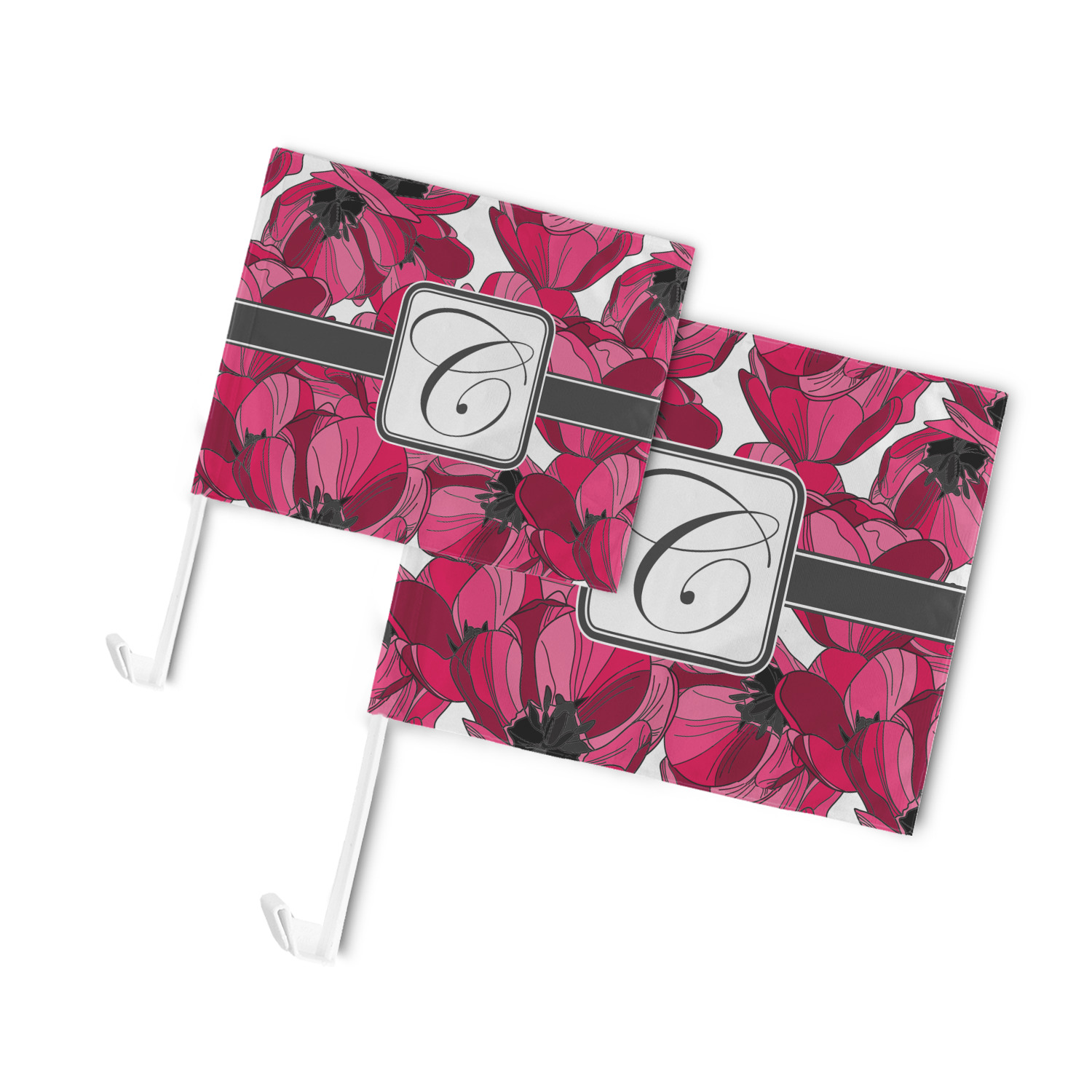 Our personalized flags are made from a durable, yet lightweight cloth that will proudly bear your logo or design of choice, while withstanding the outside elements. We have two size options - 8" x 11" and 11" x 15". Both come with a flag pole which includes a clip that secures the pole to the side window, whether it is rolled up or down. The flags are printed on both sides to display your design from all directions.