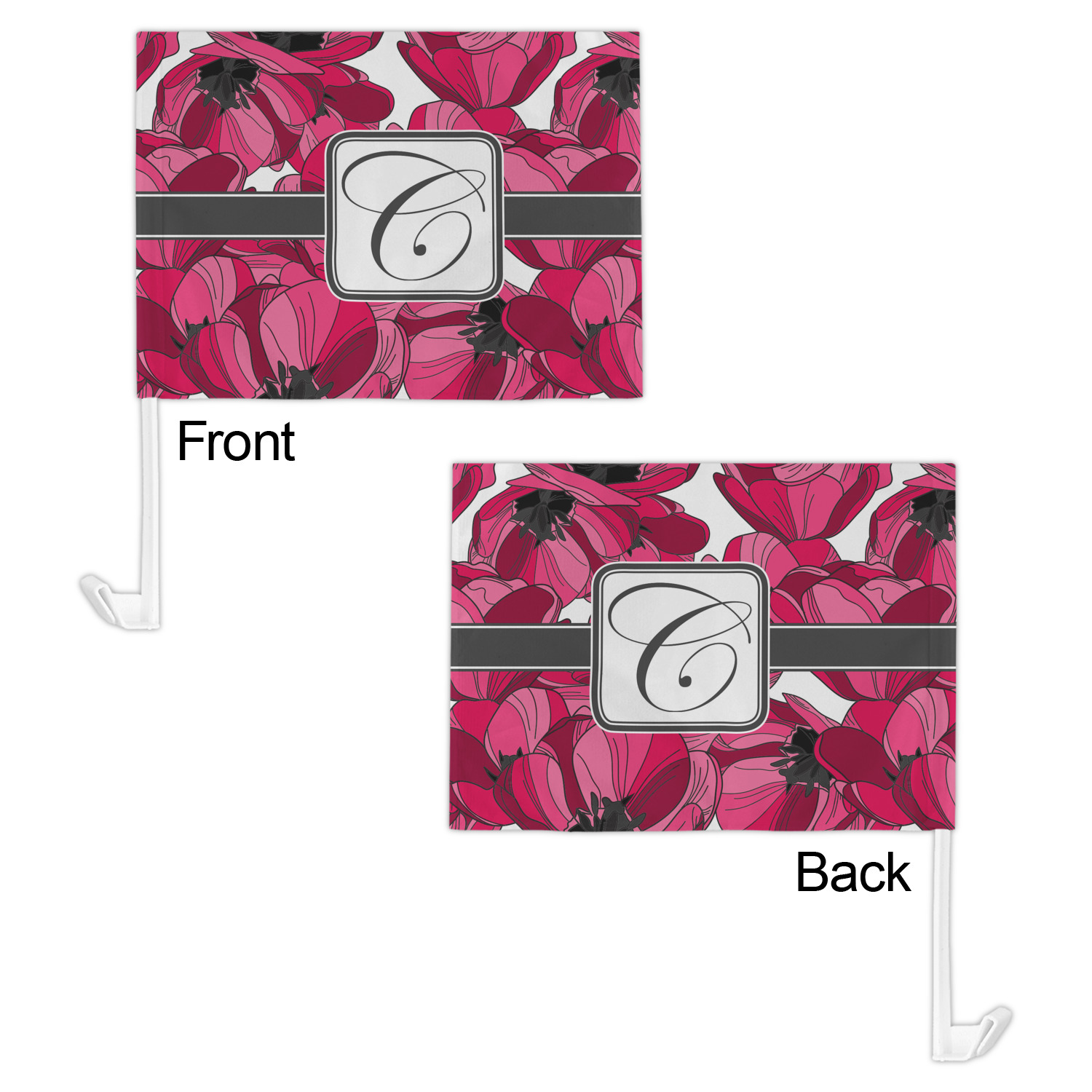 Our personalized flags are made from a durable, yet lightweight cloth that will proudly bear your logo or design of choice, while withstanding the outside elements. We have two size options - 8" x 11" and 11" x 15". Both come with a flag pole which includes a clip that secures the pole to the side window, whether it is rolled up or down. The flags are printed on both sides to display your design from all directions.
