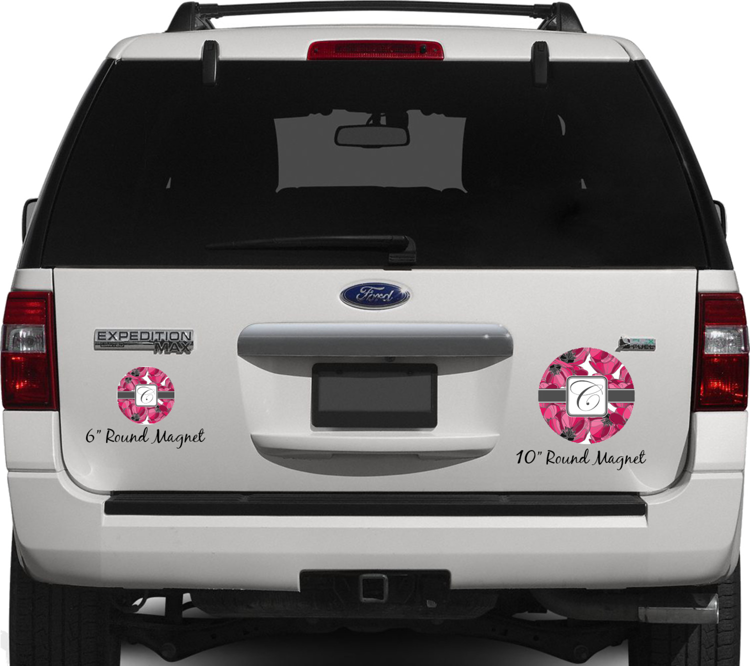 Your personalized car magnets are available for purchase in two shapes and two sizes. We carry round and square editions; each shape can either be 6 by 6 inches, or 10 by 10 inches, depending on your needs. Both versions are 1 millimeter thick, which is considered, within the industry, as the ideal thickness for automobile magnets. The magnetic car decals will adhere to any smooth, metal surface of your cars body, such as the trunk door or a side panel. However, please note that some vehicles are constructed from fiberglass bodies, which prevents the adhesion of anything magnetic. We advise that you test your vehicle before purchasing these magnets.