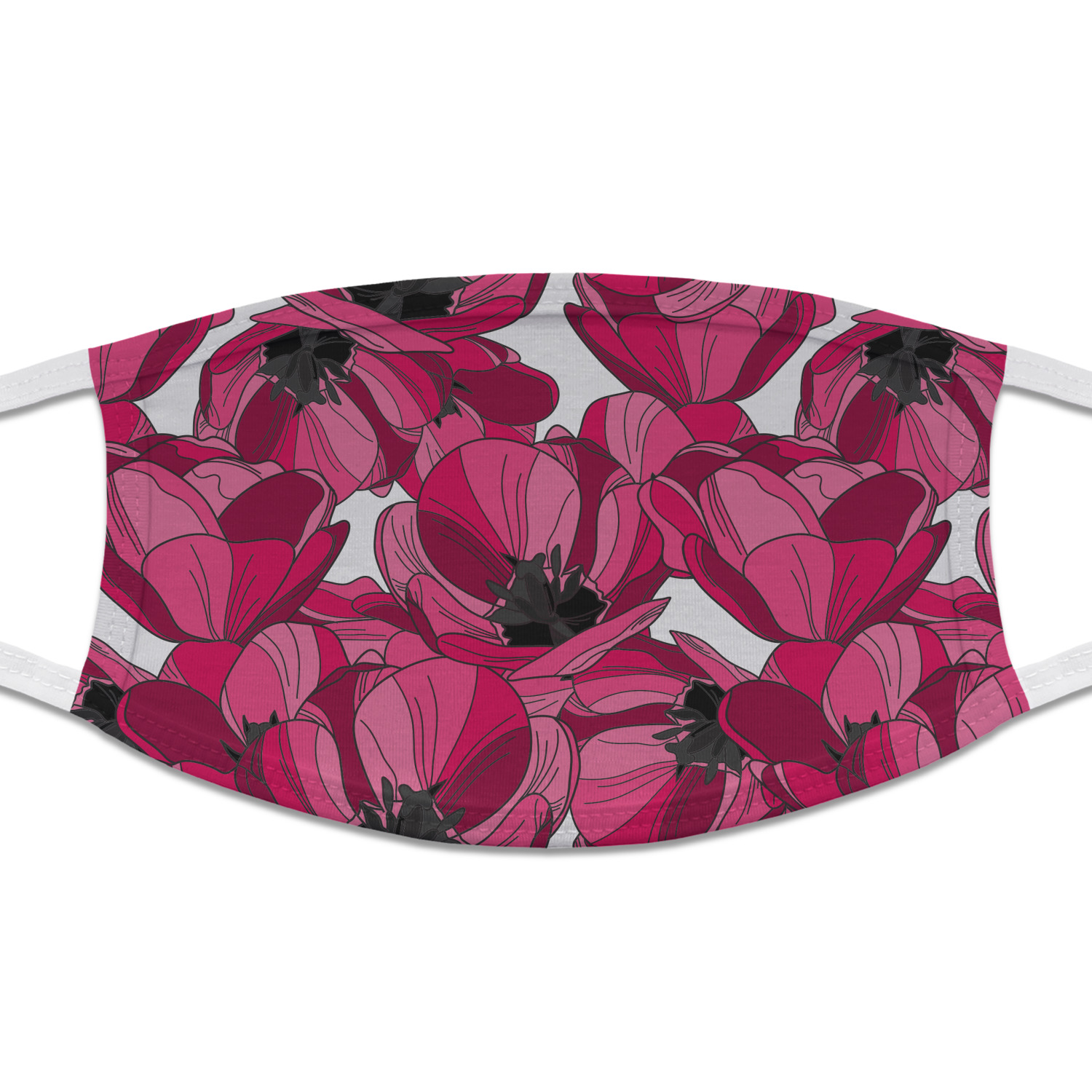 The masks are made from two layers of the soft jersey fabric. The outside layer will be printed with your design, while the inside layer is white. The body of the mask is trimmed and double stitched with the same jersey fabric. The masks are approximately 7 inches wide by 4.75 inches high