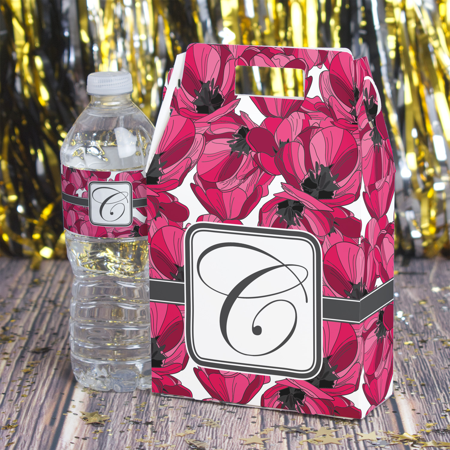 The tulips design has a classic ribbon in dark grey along with square label for your personalization.