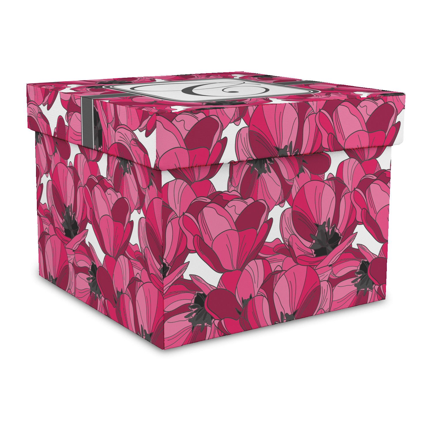 The tulips design has a classic ribbon in dark grey along with square label for your personalization.