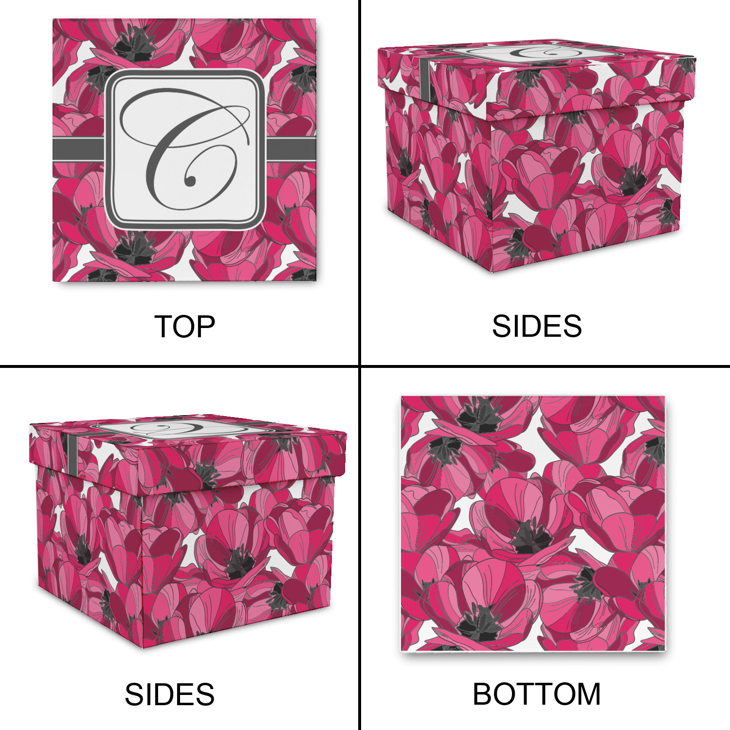 The tulips design has a classic ribbon in dark grey along with square label for your personalization.