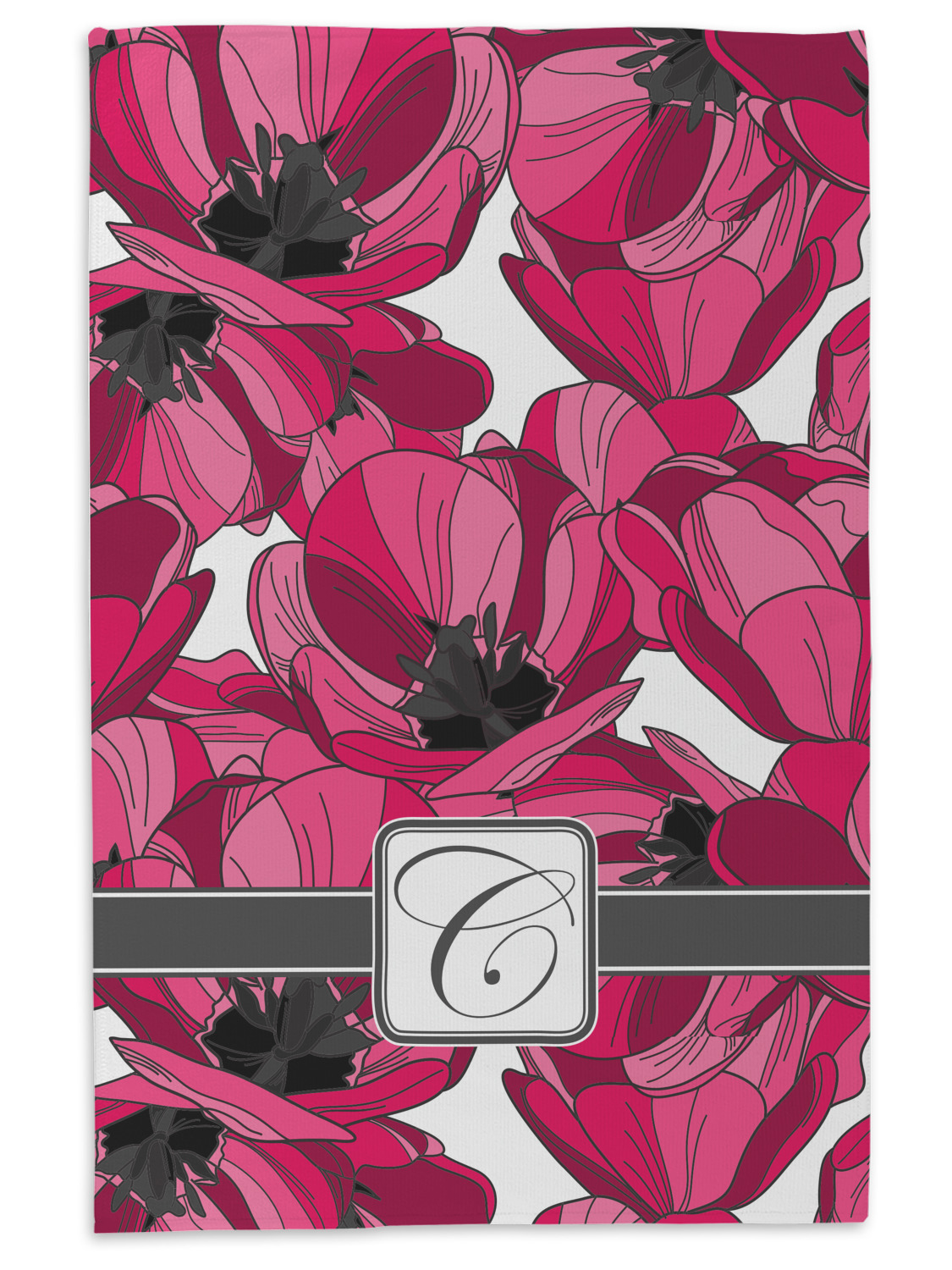 The tulips design has a classic ribbon in dark grey along with square label for your personalization.