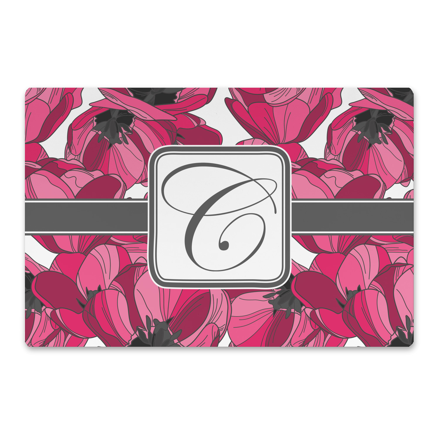 The tulips design has a classic ribbon in dark grey along with square label for your personalization.
