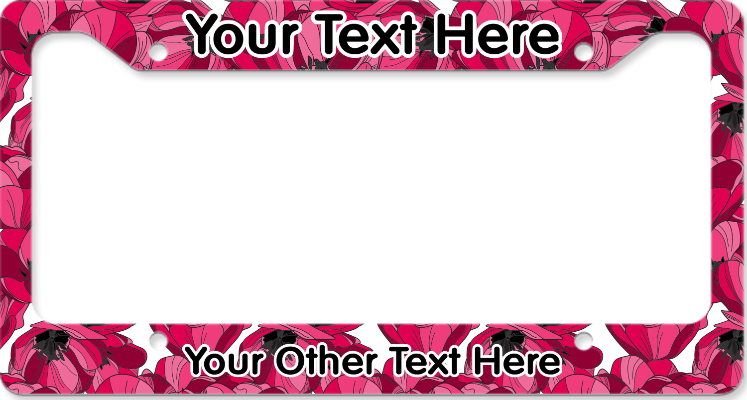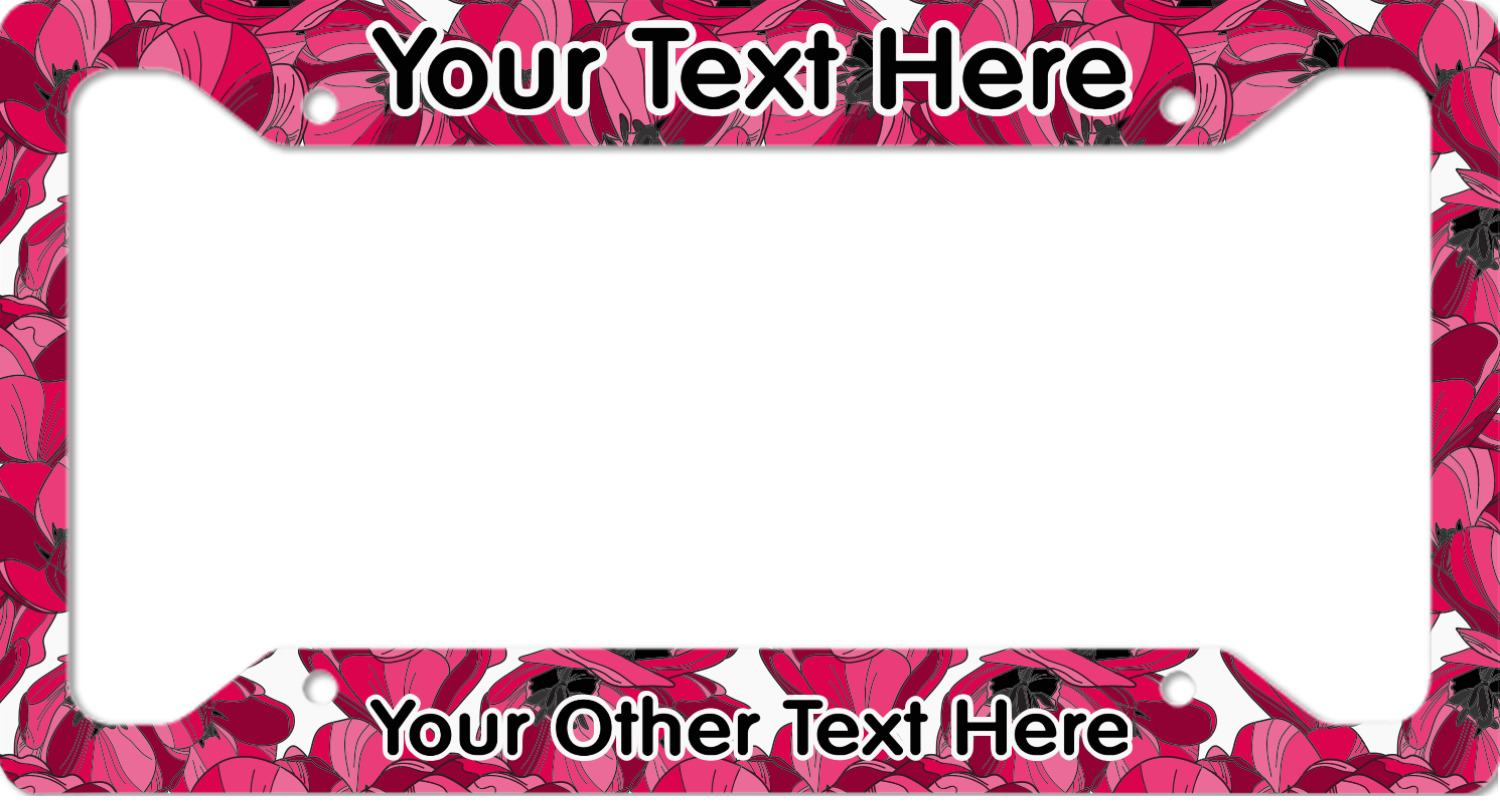 Each customizable license plate frame is made from a fine, yet sturdy aluminum material that measures approximately 6.5 x 12.15 inches, accommodating most standard license plates. The thickness allows the license plate frame to adhere completely to your license plate for a seamless look. We carry 3 styles of license plate frames to customize - Style A has texts on top and bottom, Style B offers texts on top and bottom as well as a full fill bottom border, and Style C offers text at the bottom only. The personalized license plate frame comes with four mounting holes for easy installation! We print each custom design across the frame with a glossy finish.