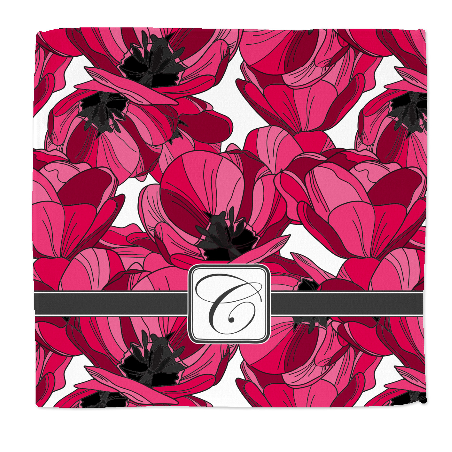 The tulips design has a classic ribbon in dark grey along with square label for your personalization.