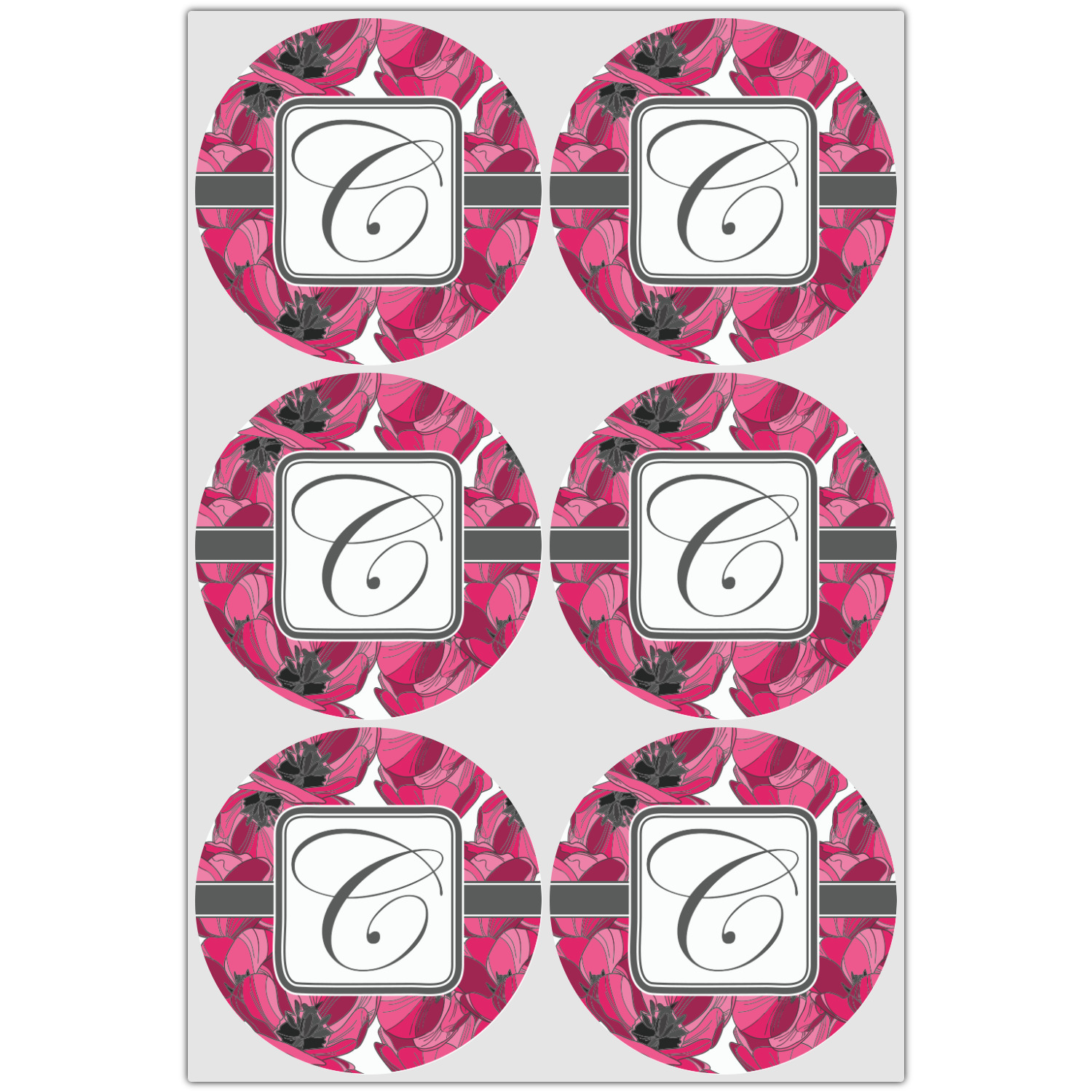 The tulips design has a classic ribbon in dark grey along with square label for your personalization.