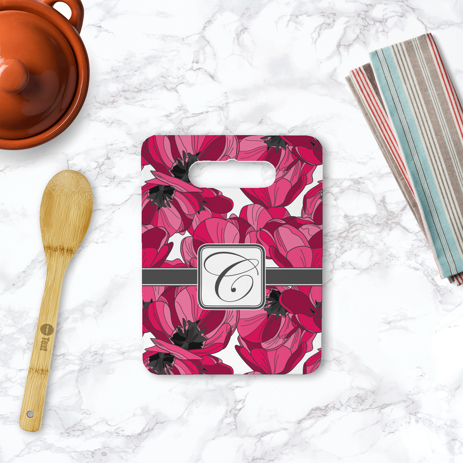 The tulips design has a classic ribbon in dark grey along with square label for your personalization.