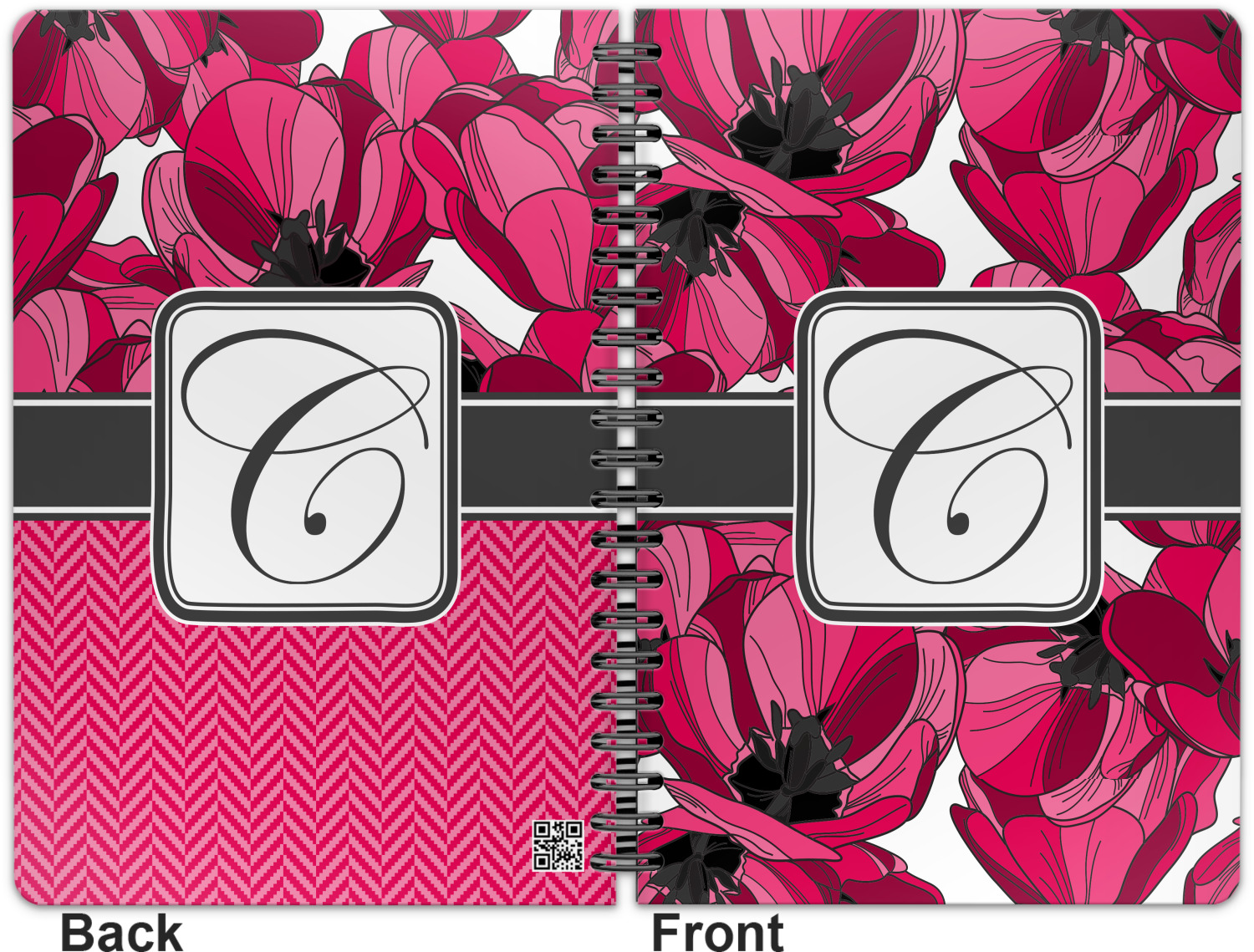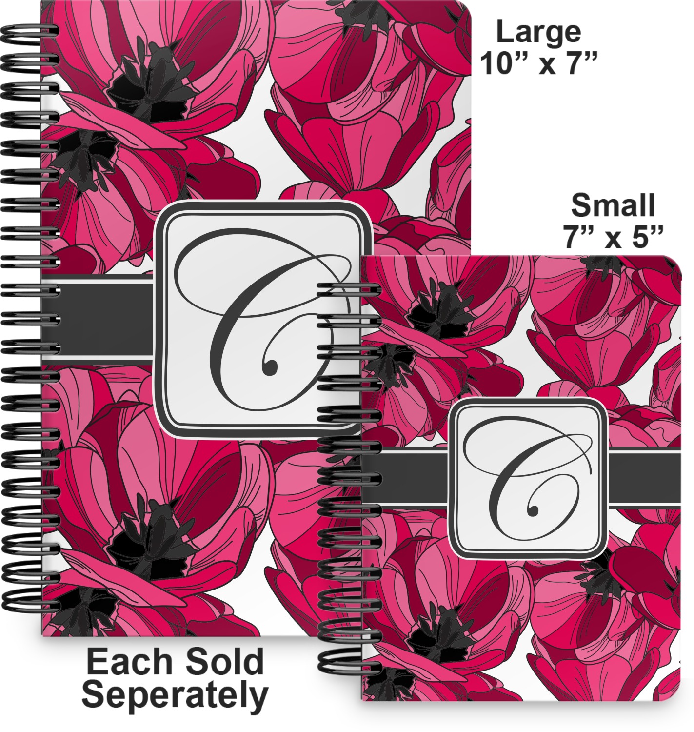This spiral journal is available in two sizes. The first size is more suitable for a tote or purse and measures at 7" x 5". The second option is a bit larger, at 10" x 7", and is a better fit for a briefcase or backpack.
