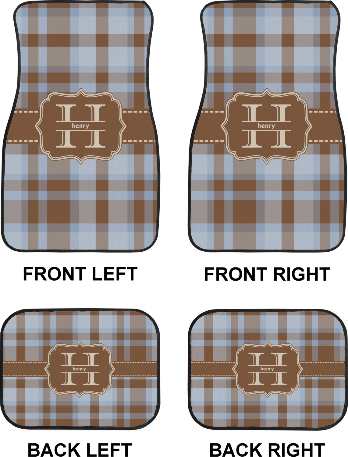 We craft our auto floor mats mats from polyester, apply a black finish to the edges, and lined at the bottom to prevent slippage. These mats protect your floors from grass, mud, and any accidental spills. We display your personalized design on the front face of each mat. The sizes of these car floor liners are standardized to provide a versatile fit for all vehicles. The front rows car mats measure at 17 by 26.5 inches, while the back rows measure at 17 by 13 inches. We sell three packages of car floor mats. You can purchase a pair of front row car mats, a pair of back row car mats, or a set of front row and back row car mats. To make an informed purchase, we recommend measuring the surface area of your car floors.